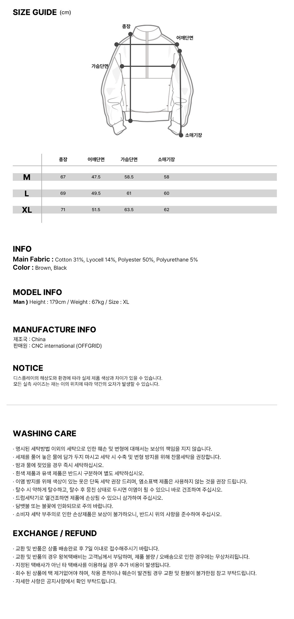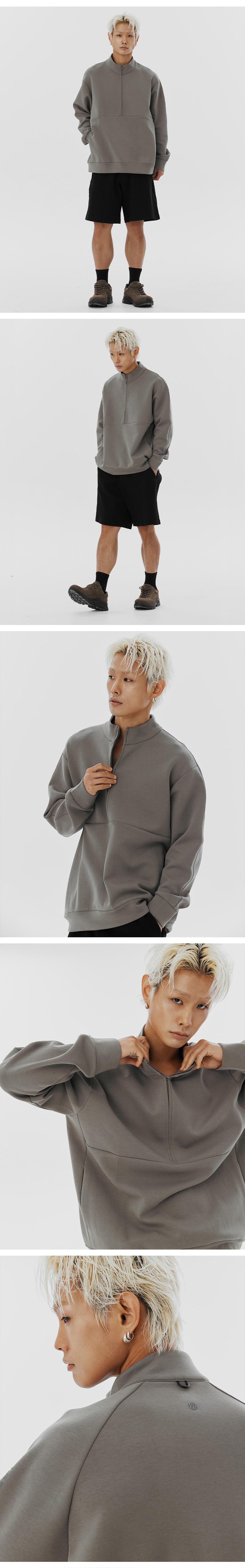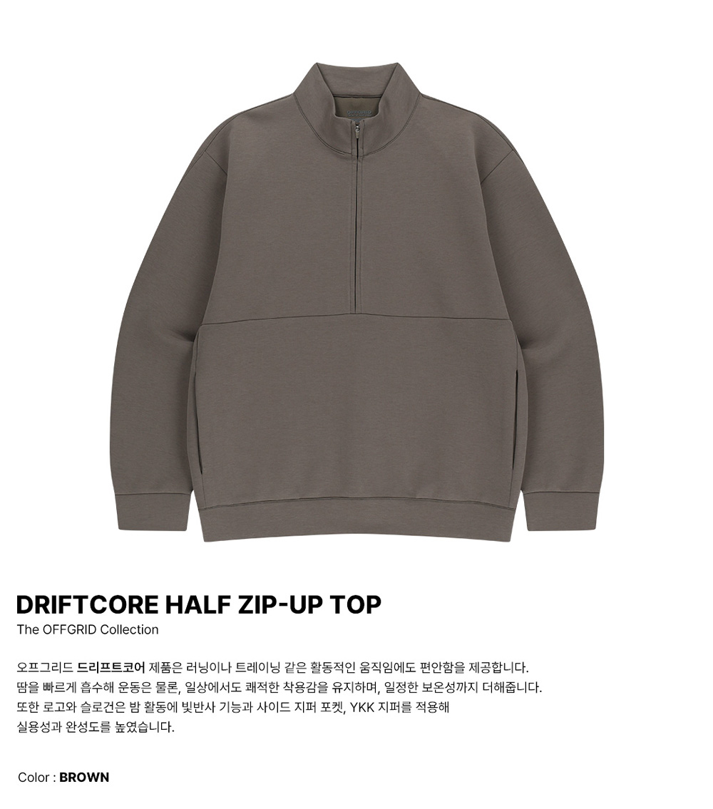 오프그리드 드리프트코어 유니 하프집업 탑 브라운