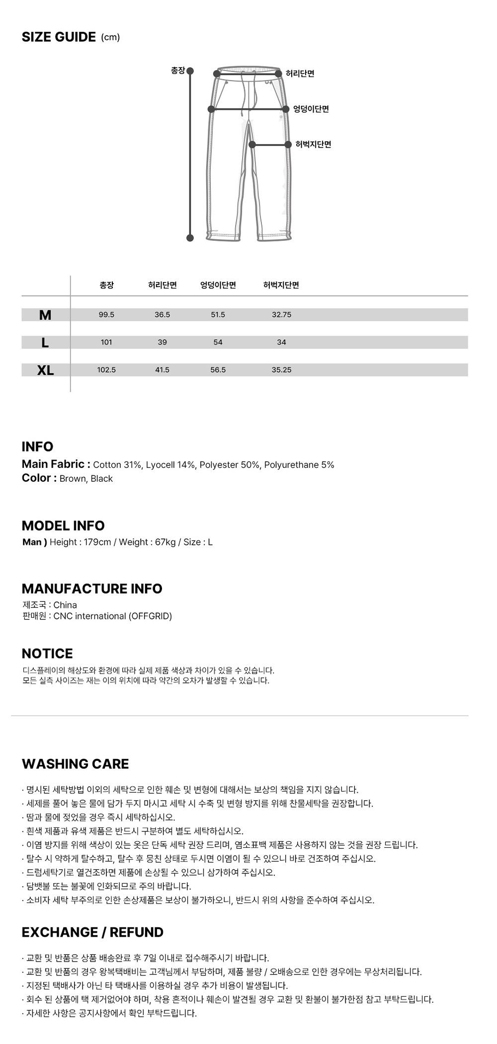오프그리드 드리프트코어 유니 팬츠 브라운