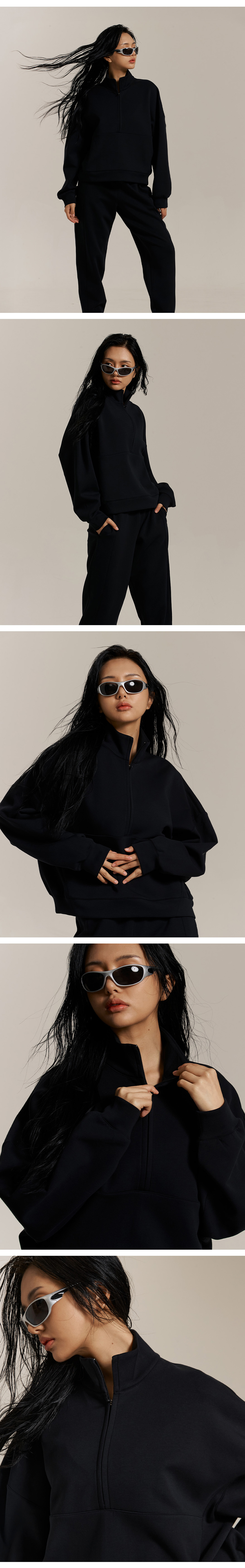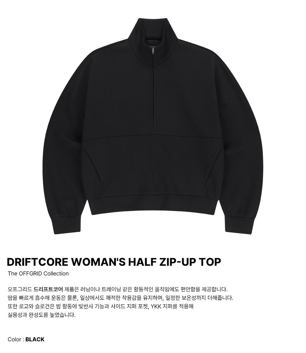 오프그리드 드리프트코어 우먼스 하프집업 탑 블랙