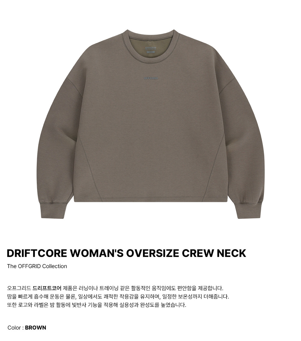 오프그리드 드리프트코어 우먼스 오버사이즈 크루 넥 브라운