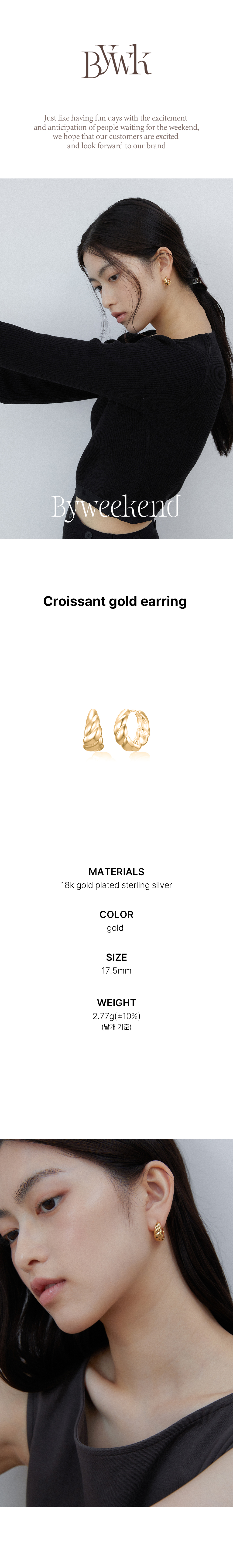 바이위켄드 크로아상 이어링 골드