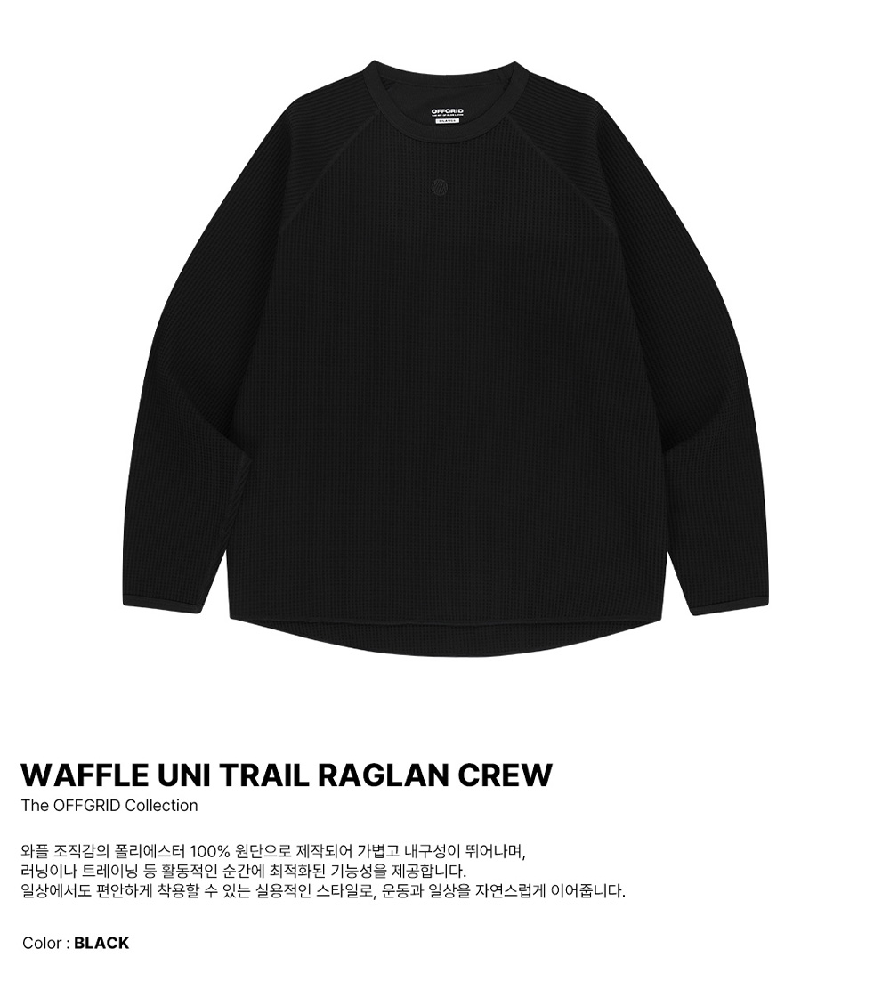 오프그리드 와플 유니 트레일 래글런 크루 블랙
