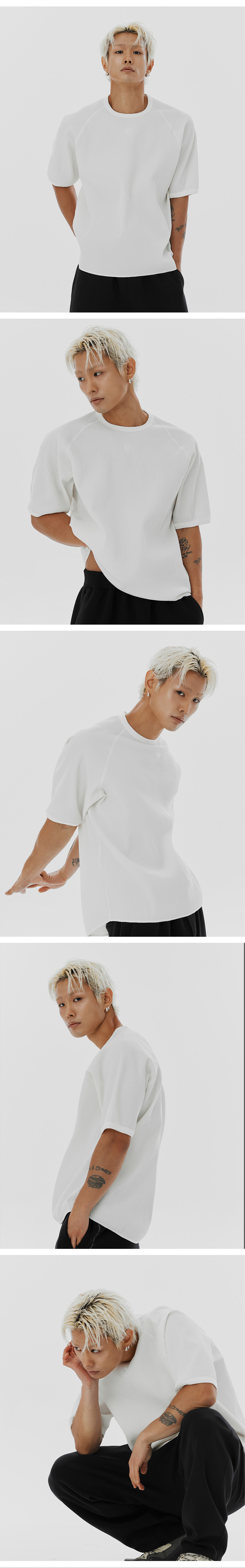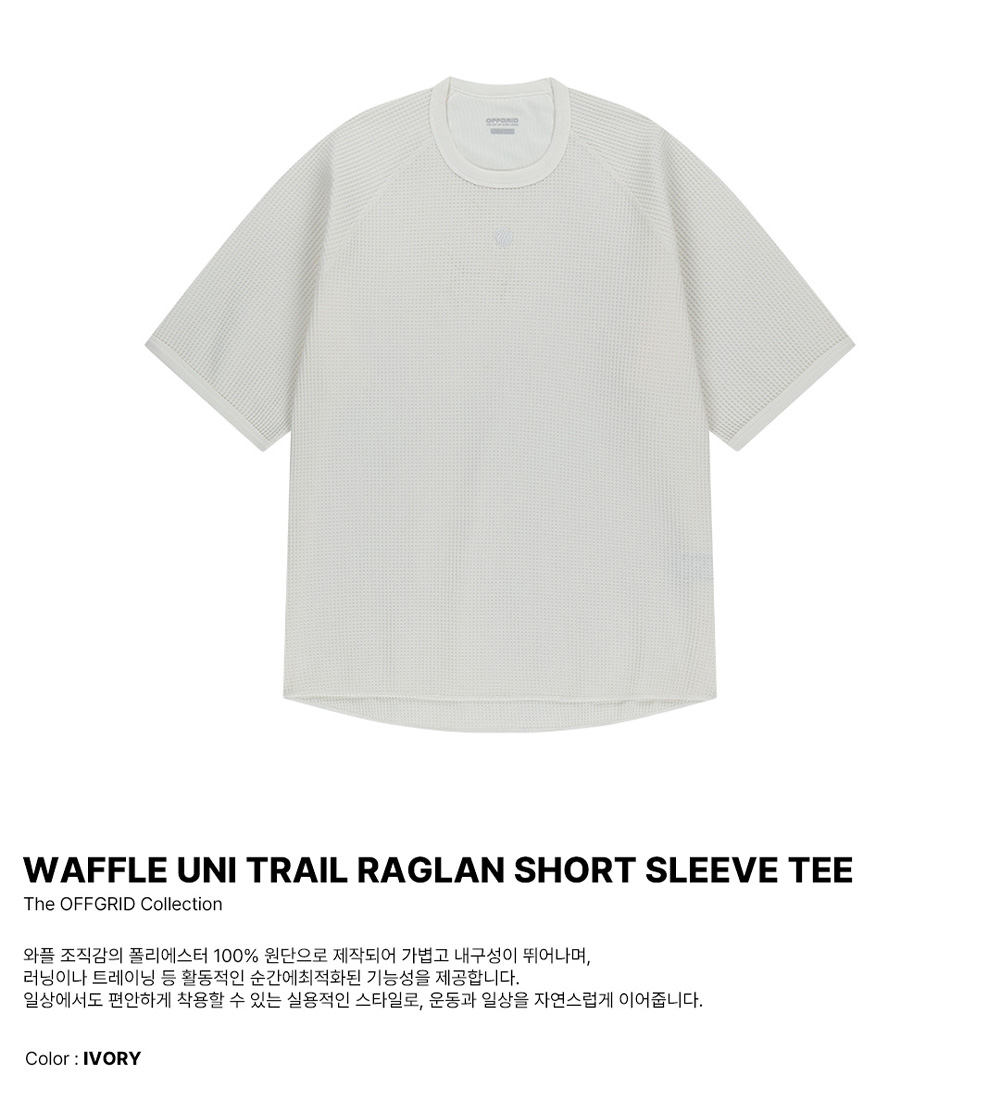 오프그리드 와플 유니 트레일 래글런 숏 슬리브 티 아이보리