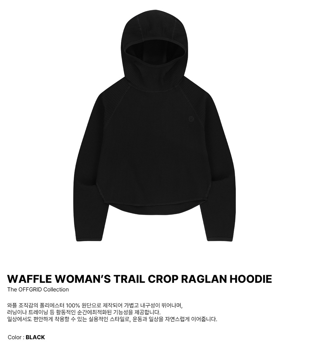 오프그리드 와플 우먼스 트레일 크롭 래글런 후디 블랙