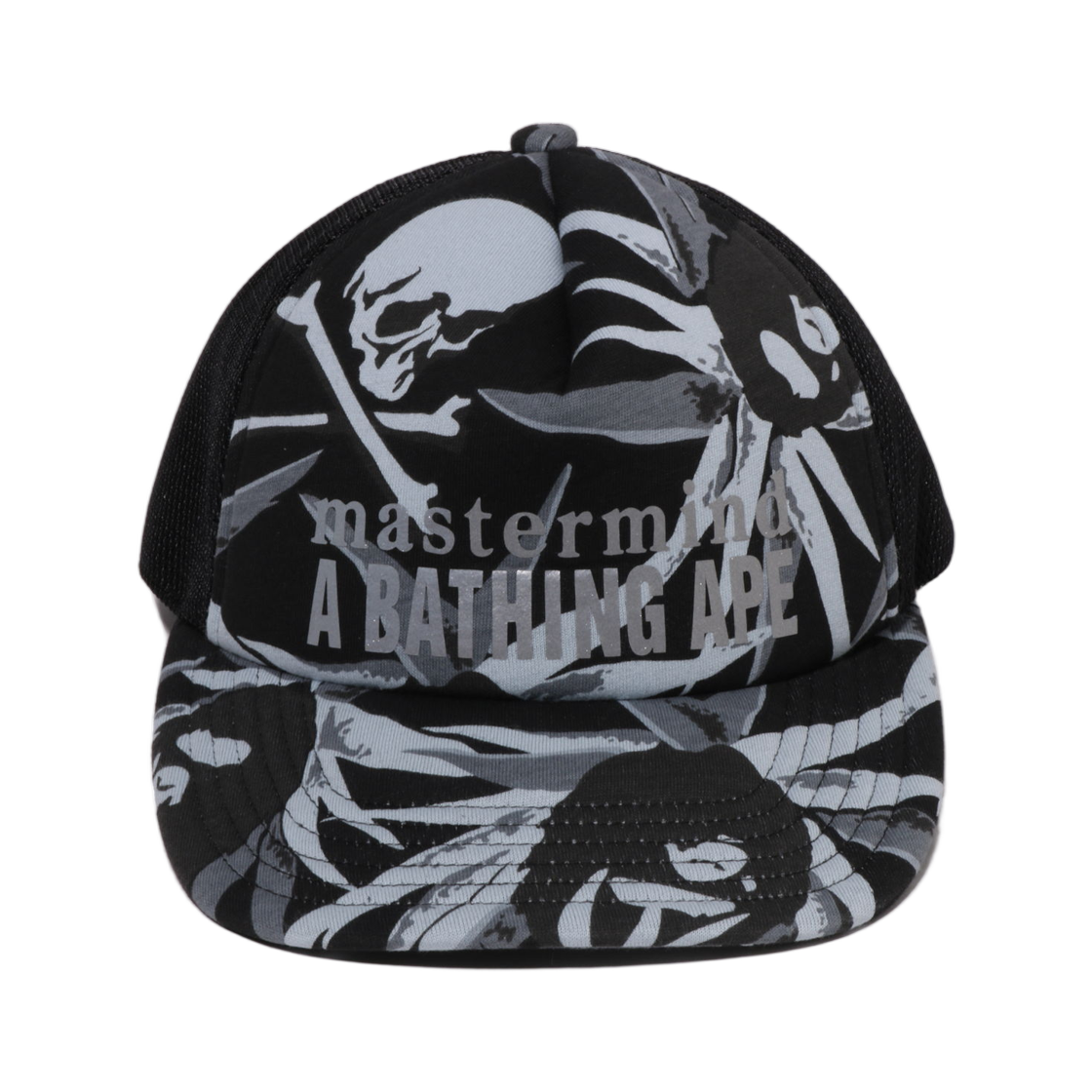 베이프 x 마스터마인드 트로피컬 스컬 카모 메쉬 캡 블랙