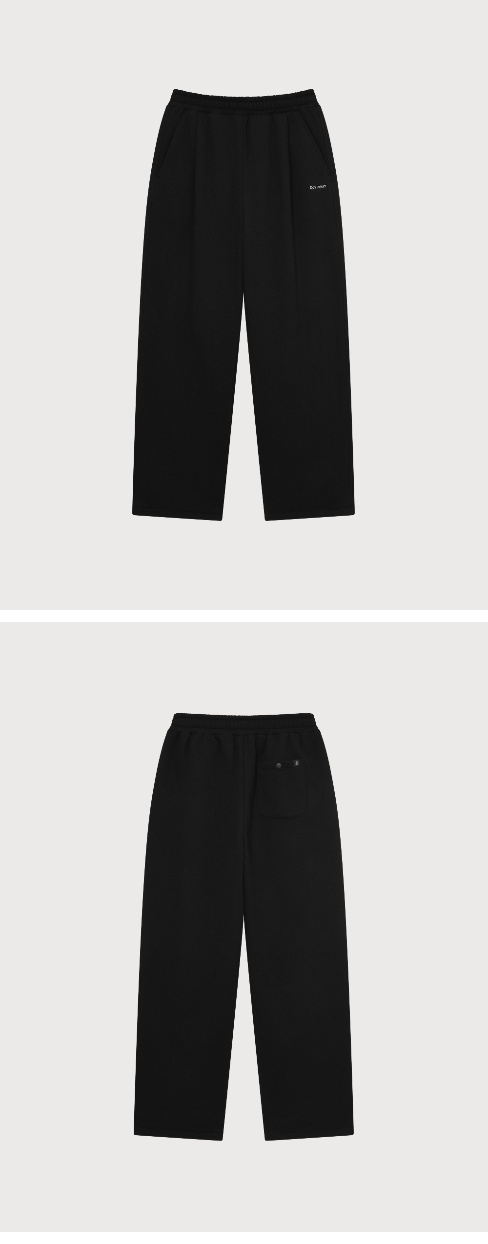 커버낫 세미와이드 스몰 로고 기모 스웻 팬츠 블랙