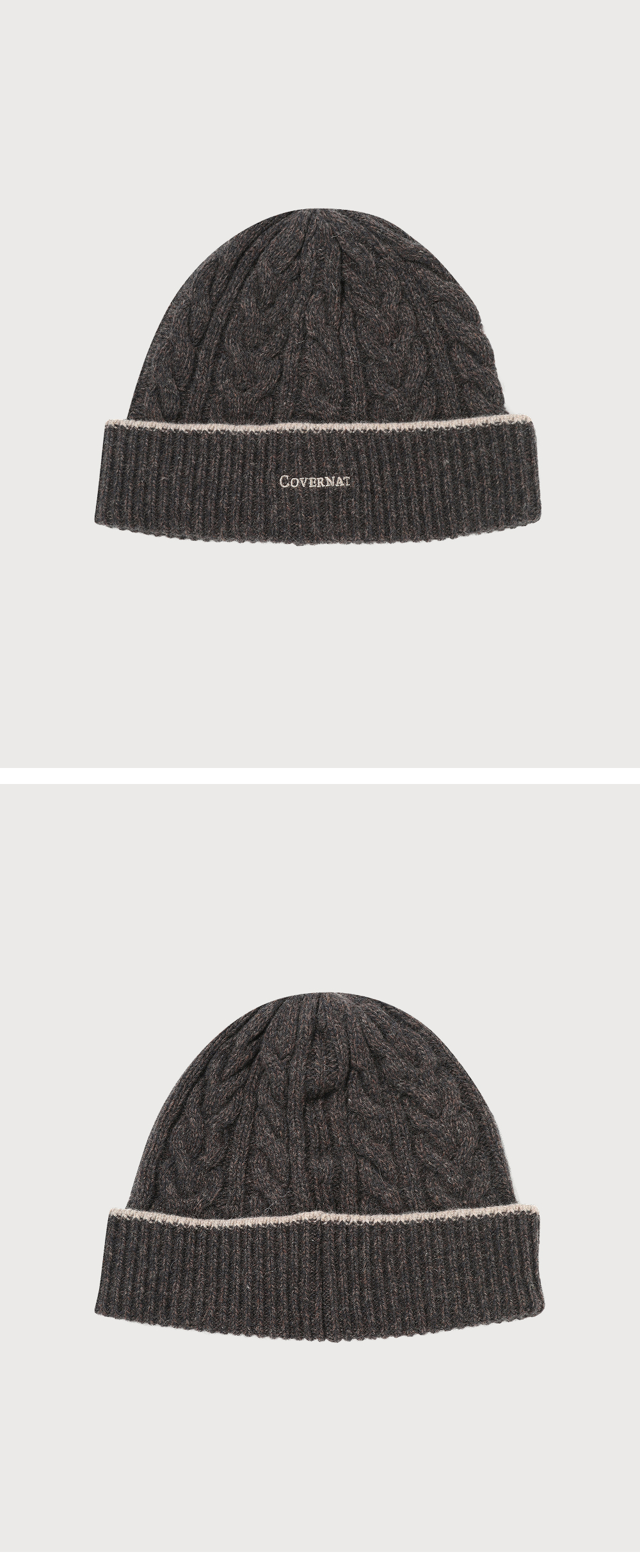 Covernat Logo Cable Lambs Wool Beanie Brown