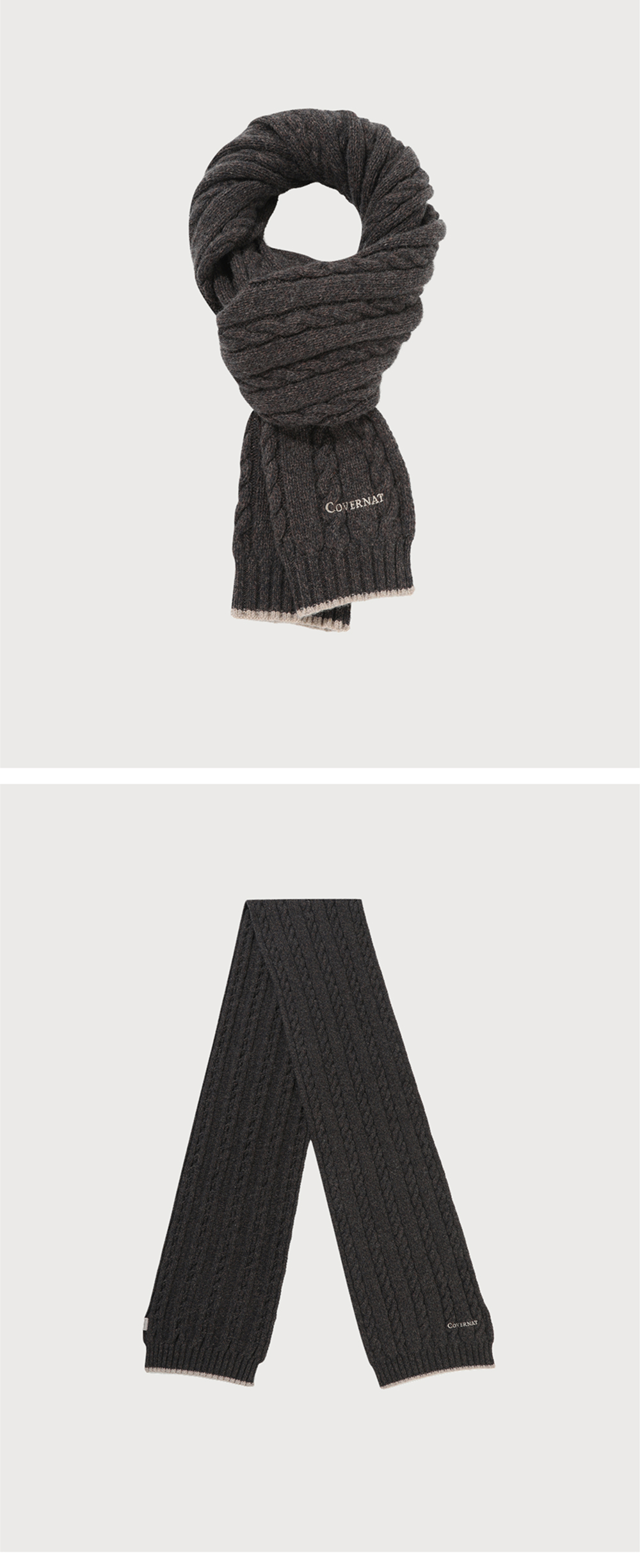 Covernat Logo Cable Lambs Wool Muffler Brown