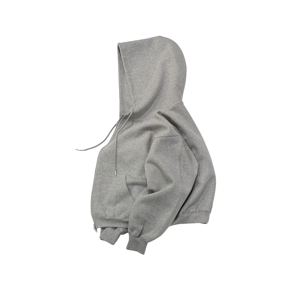 언더마이카 무.148 콤비 본디드 크롭 스웨트 후드 집업 멜란지 그레이