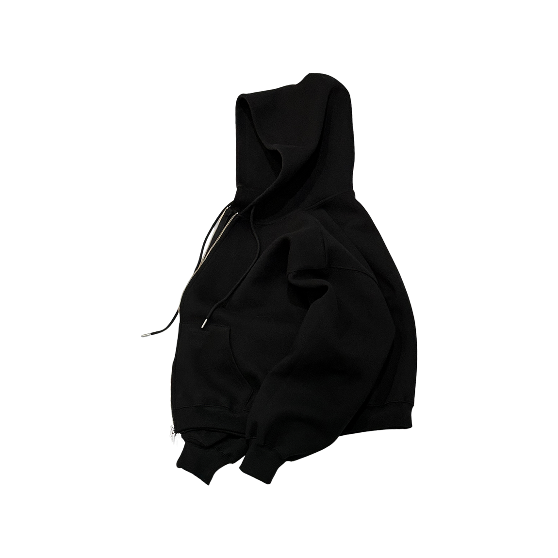 언더마이카 무.148 콤비 본디드 크롭 스웨트 후드 집업 블랙