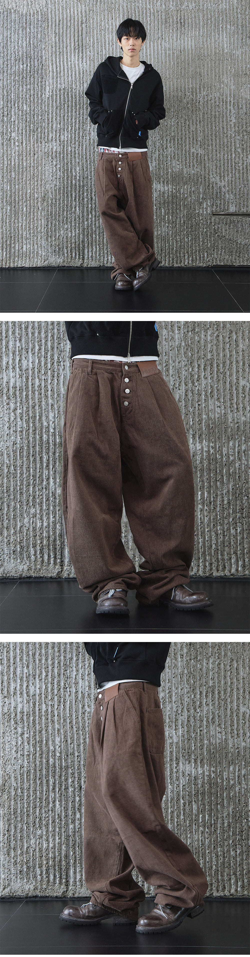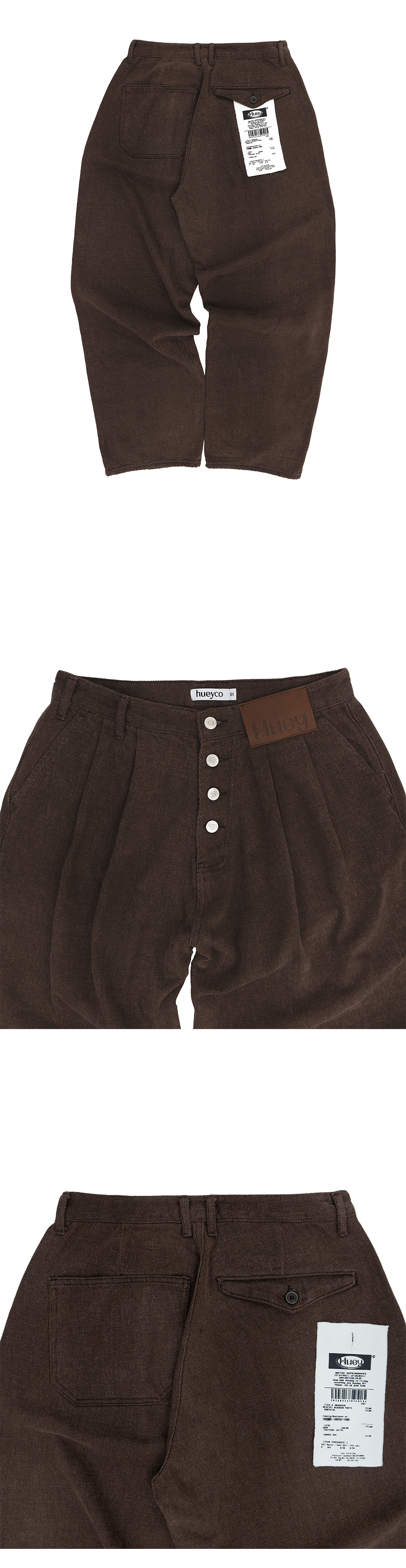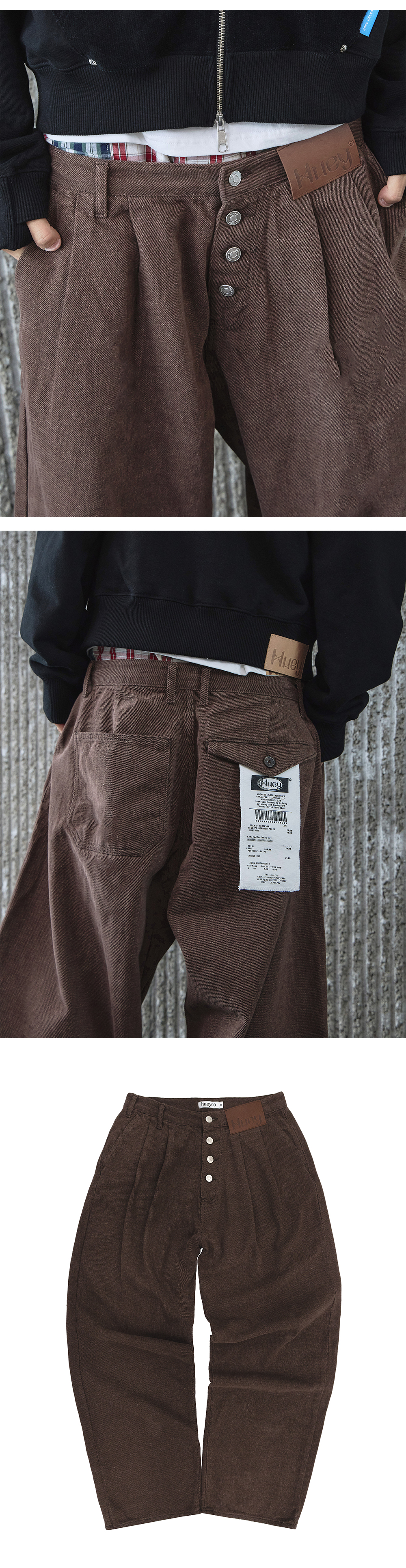 휴이 리시트 워시드 커브드 팬츠 브라운