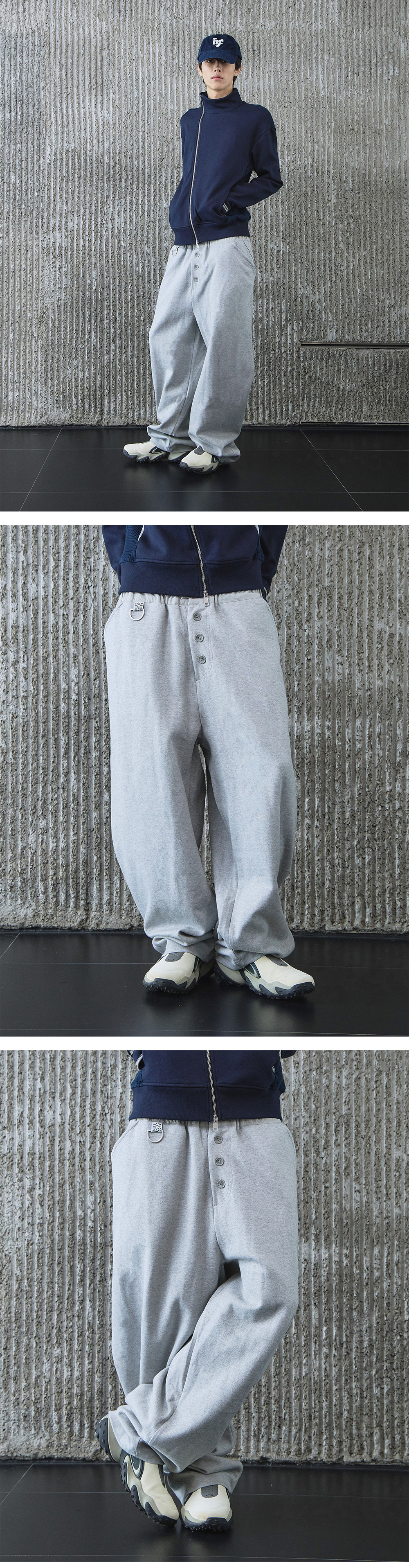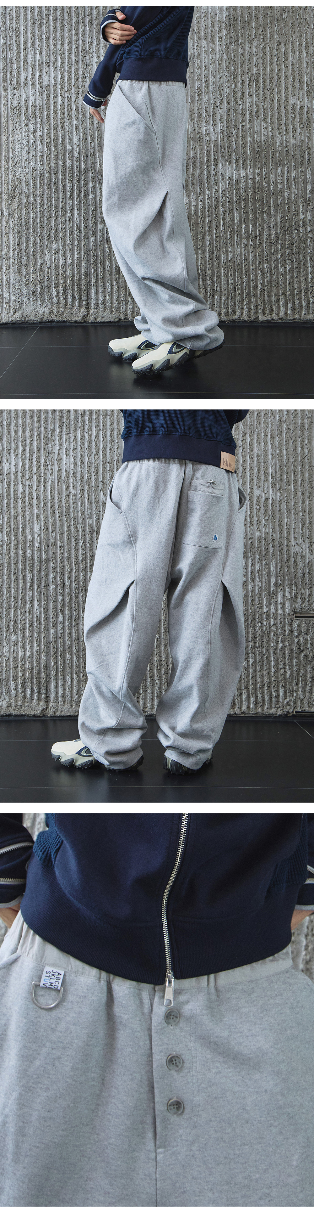 휴이 버튼플라이 커브드 스웻팬츠 그레이