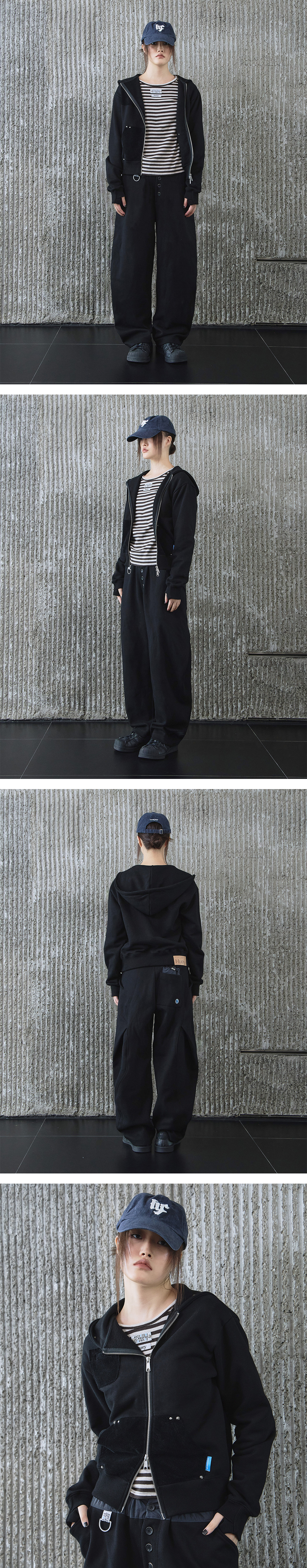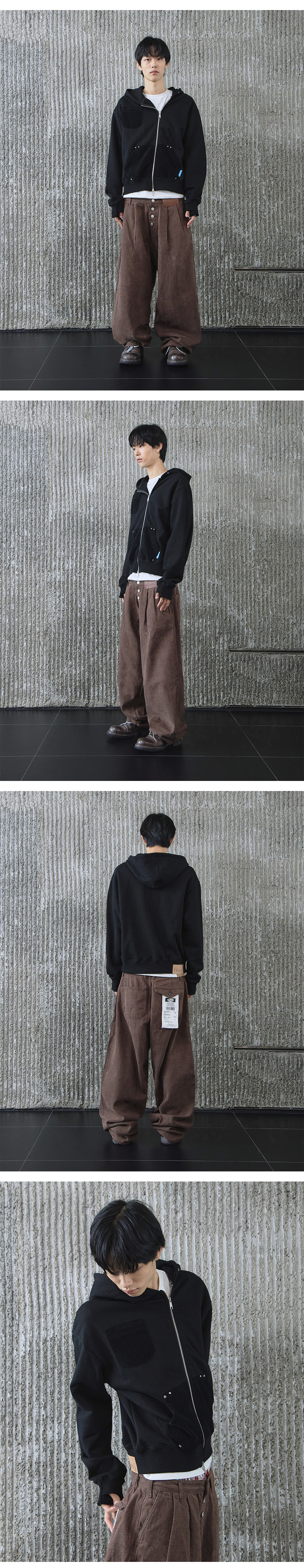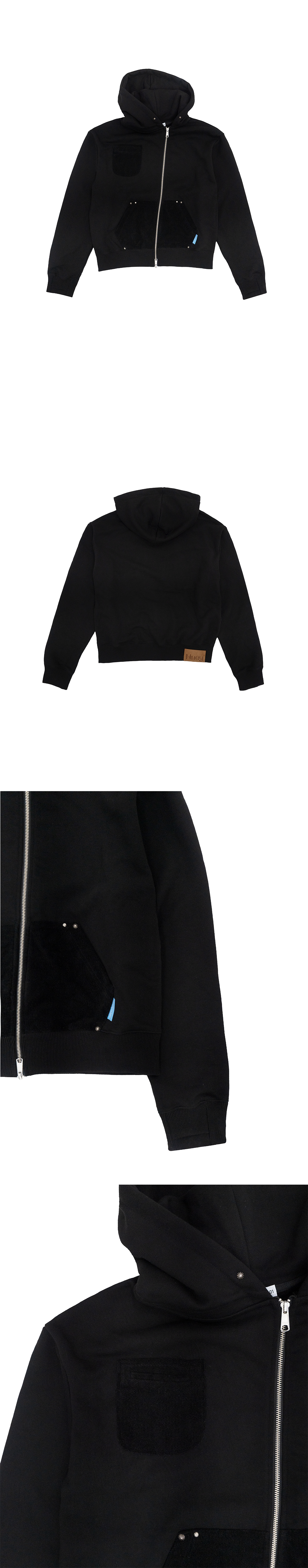 휴이 언발란스드 스터디드 후드집업 블랙