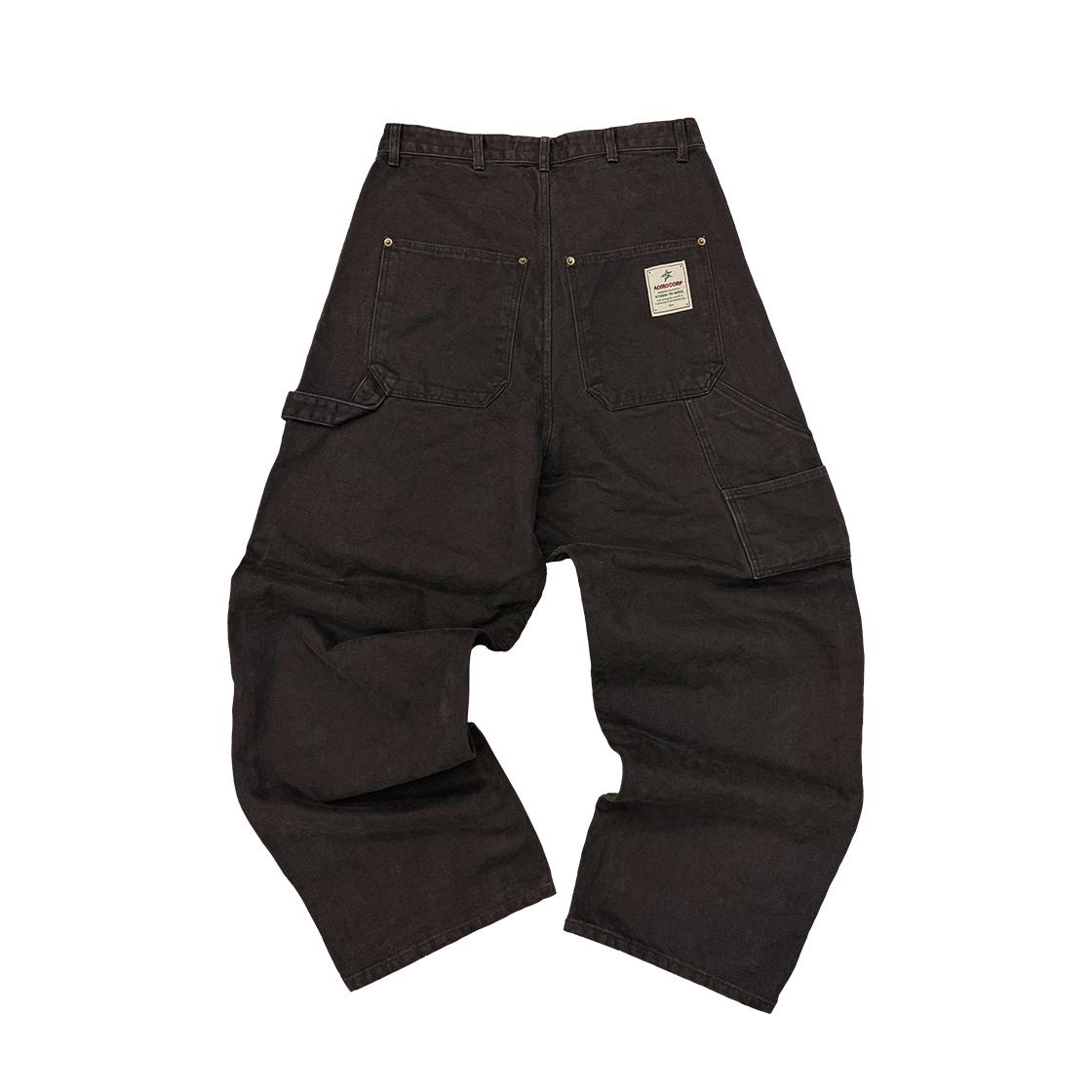 Aoiro Cutted Double Knee Pants - Black Pearl 은 워크웨어를 기본 축으로 삼아 아오이로만의 디테일과 실루엣으로 변형한 팬츠입니다. 워크웨어에서 주로 사용하는 원단, 디테일, 빈티지한 워싱과 아오이로만의 디테일을 추가한 피스로 기존 스큐들과는 다른 신선한 매력을 표출합니다. (사이즈는 측정 방법에 따라 1-2cm정도 오차가 있을 수 있습니다.)