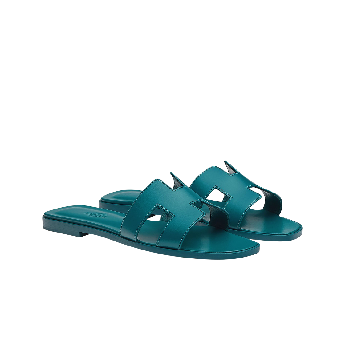 (W) Hermes Oran Sandal Calfskin & Bleu Emeraude