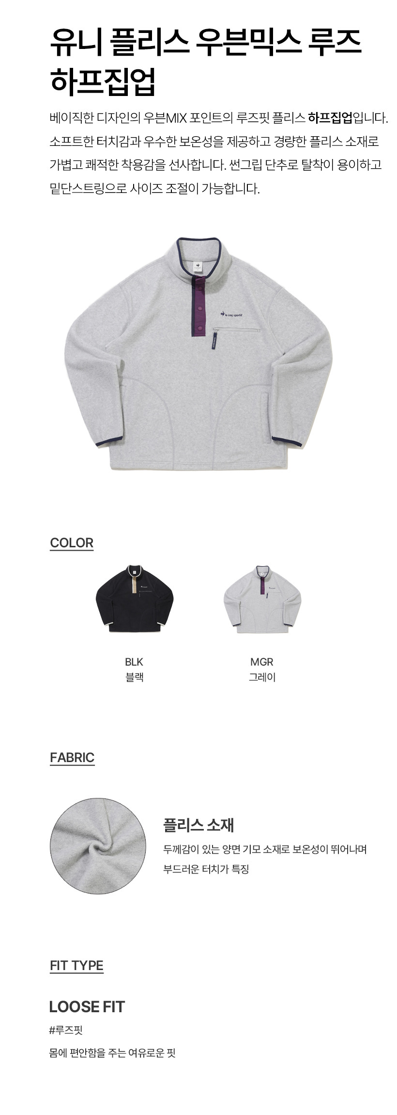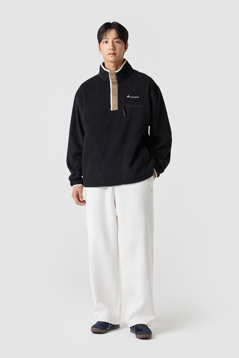 르꼬끄 스포르티브 유니 플리스 루즈핏 하프집업 - 블랙 QQ423LFSO3