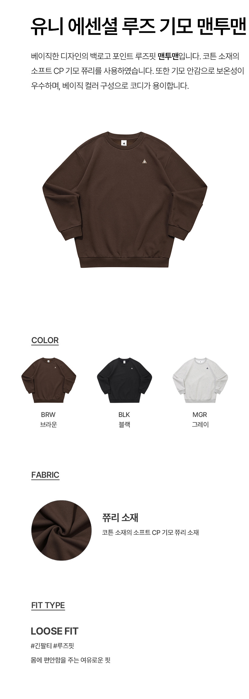 르꼬끄 스포르티브 유니 기모 루즈핏 맨투맨 - 그레이(QQ423LFSO1)