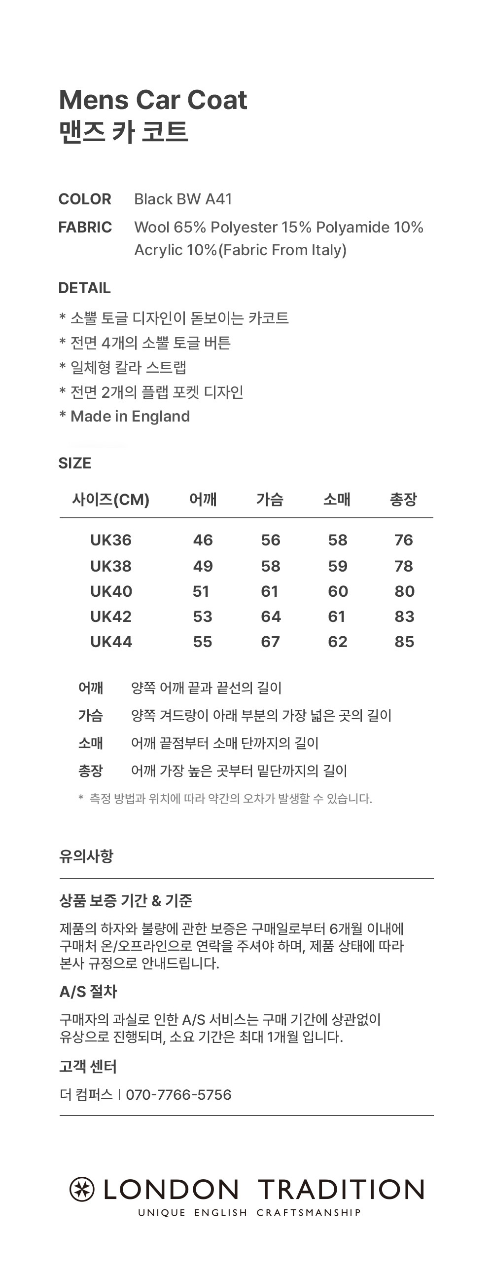 | 어깨 | 가슴단면 | 소매 | 총장 |