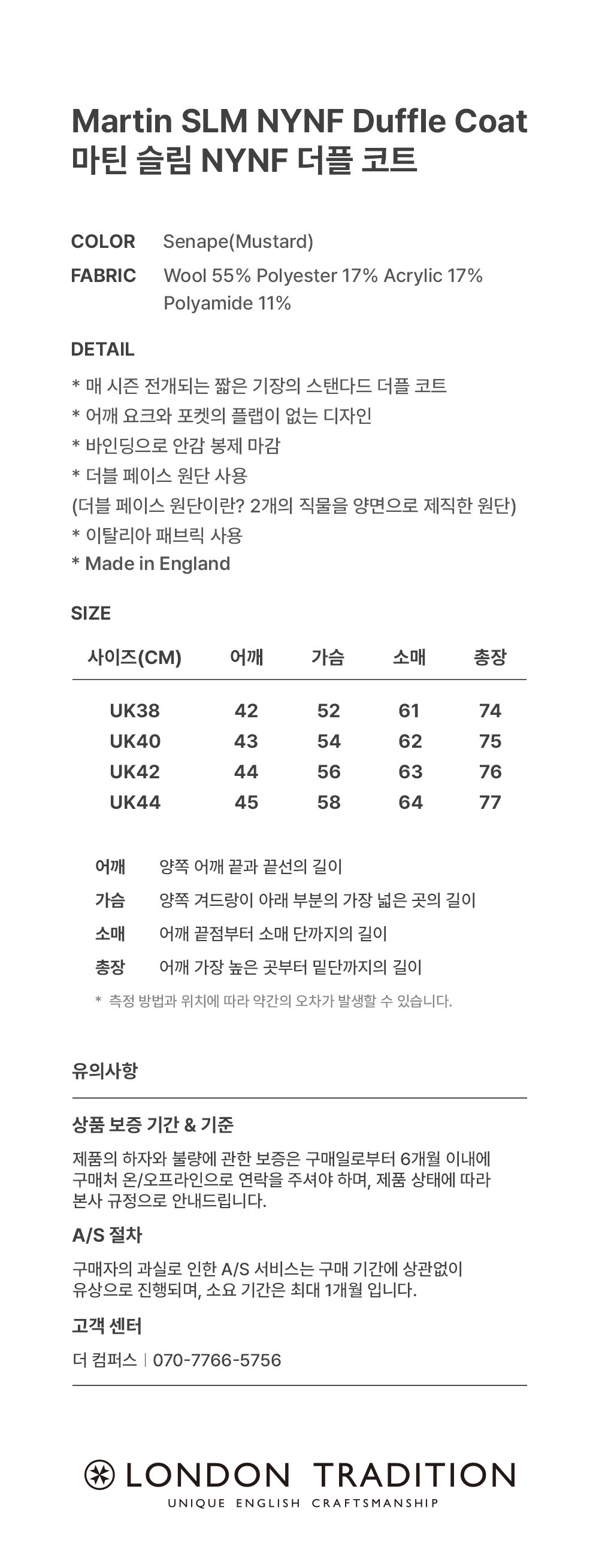런던 트레디션 마틴 슬림 NYNF 더플 코트 머스타드