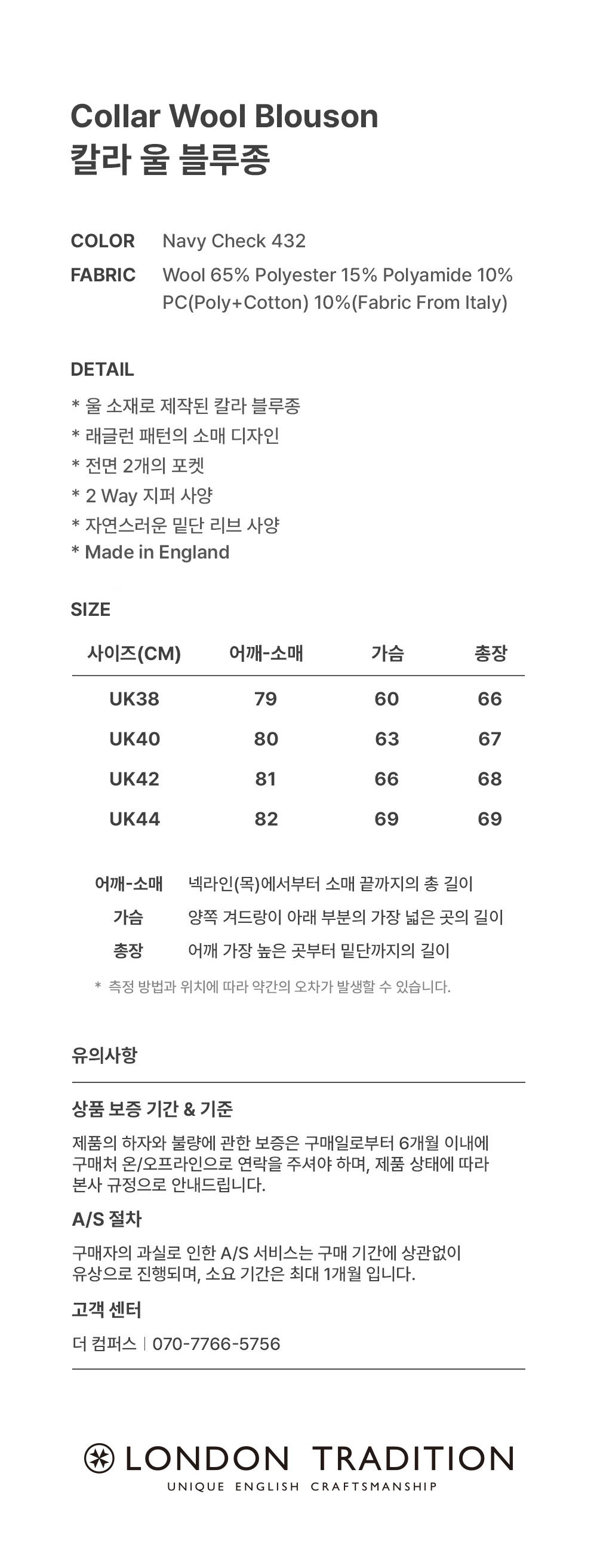 런던 트레디션 칼라 울 블루종 네이비 체크 432