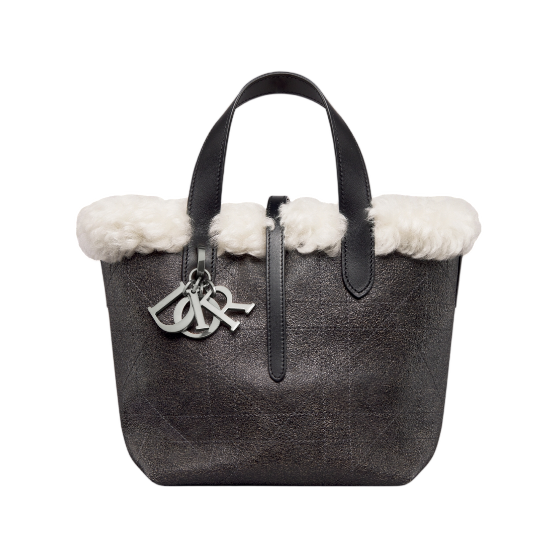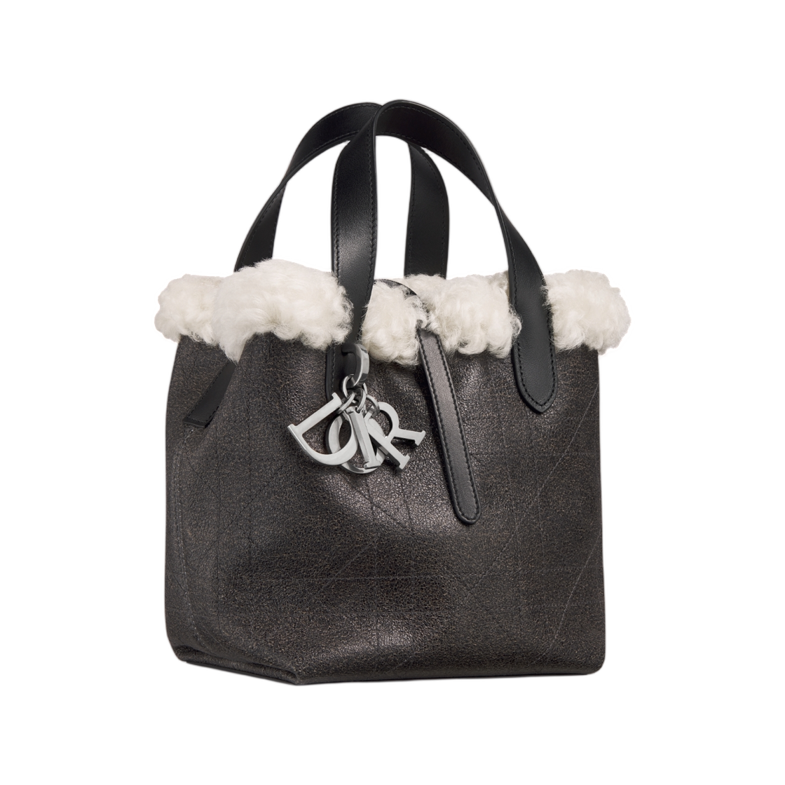 디올 디올알프스 디올 뚜주흐 스몰 버티컬 토트 매크로 까나쥬 에이지드 이펙트 램스킨 앤 메리노 울 앤트러사이트 그레이 에크루