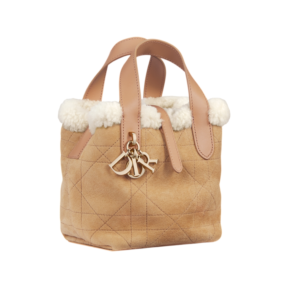Dior Dioralps Dior Toujours Vertical Nano Tote Macro Cannage Suede Calfskin And Merino Wool Beige Ecru