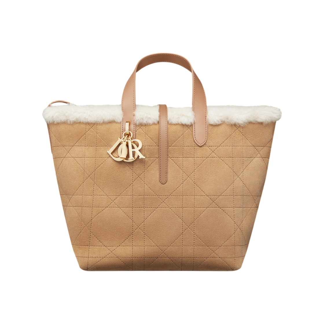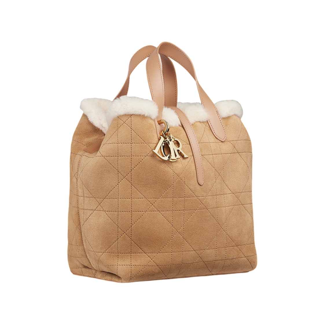 Dior Dioralps Dior Toujours Medium Vertical Tote Macro Cannage Suede Calfskin And Merino Wool Beige Ecru