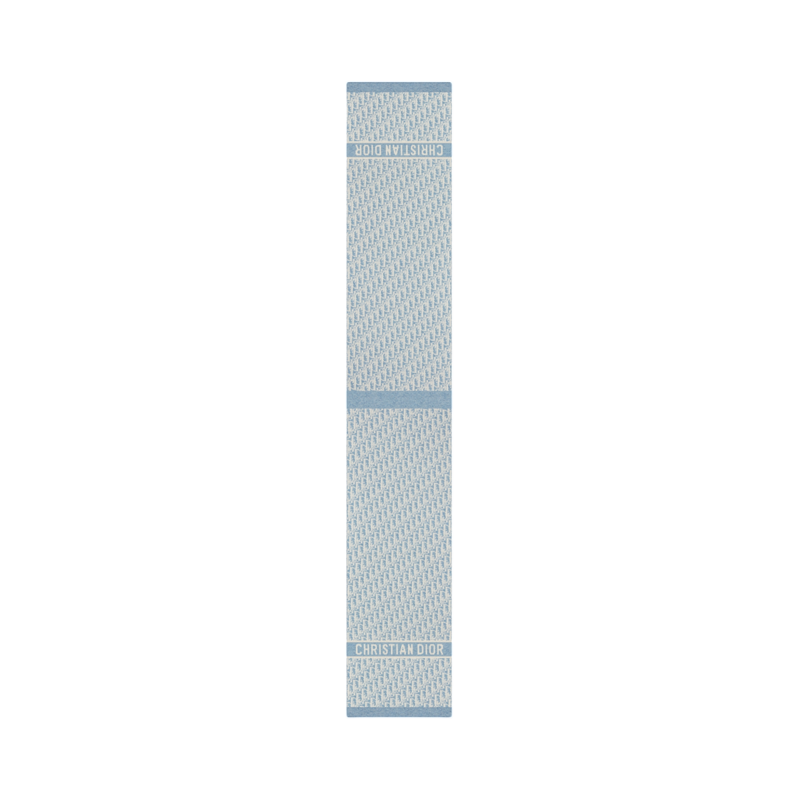 (W) Dior Dioralps Dior Oblique Scarf Cashmere Blend Intarsia Jacquard Ecru Chambray Blue