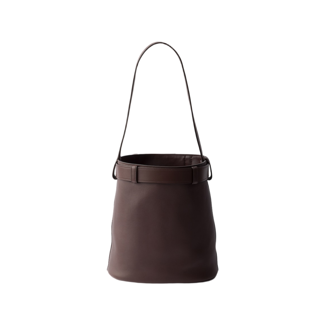 Prada Buckle Leather Bucket Bag with Belt Briarwood