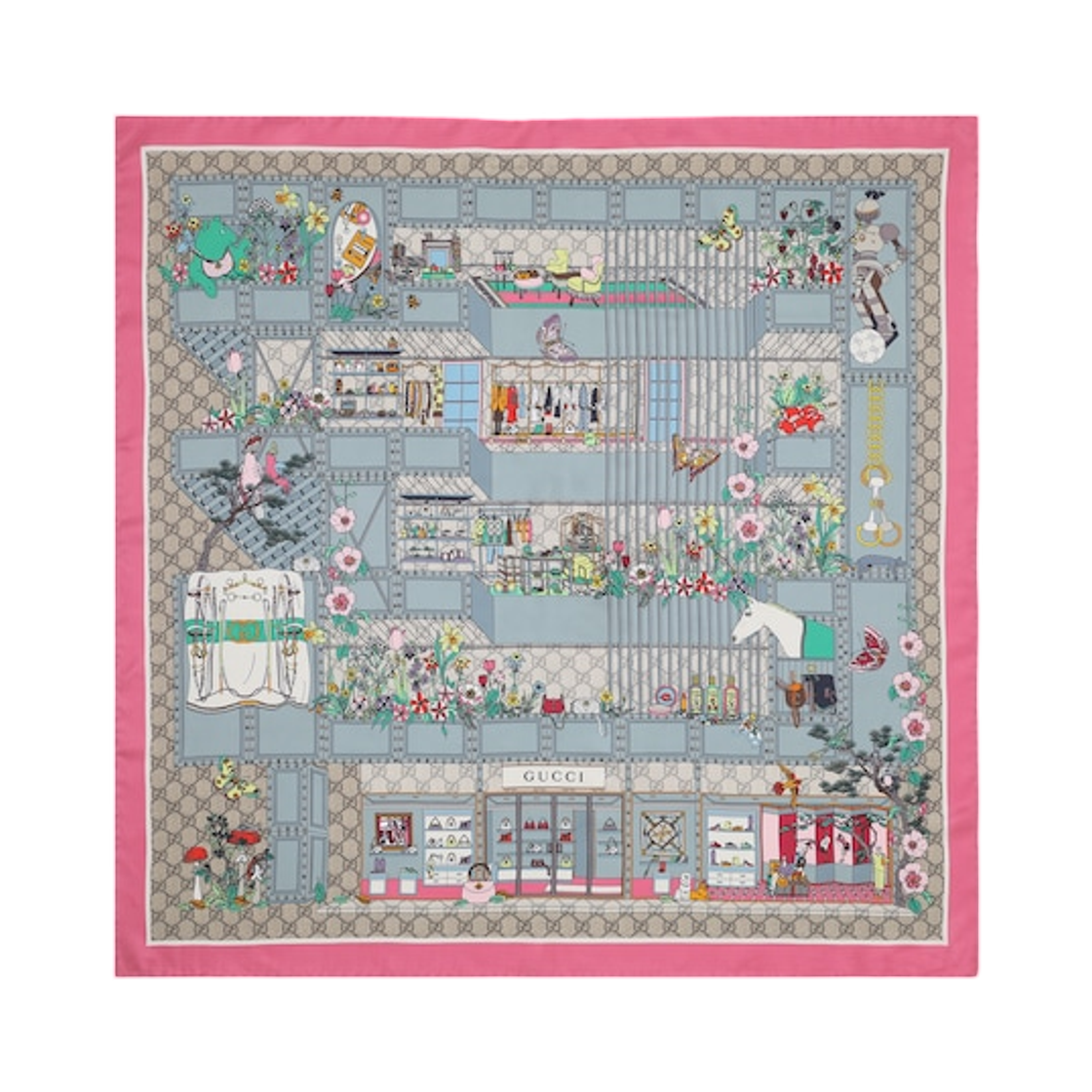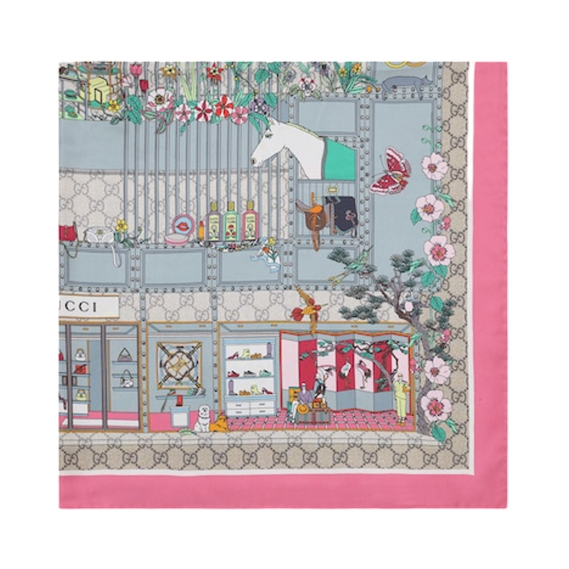 (W) Gucci Printed Silk Twill Carre Multicolor