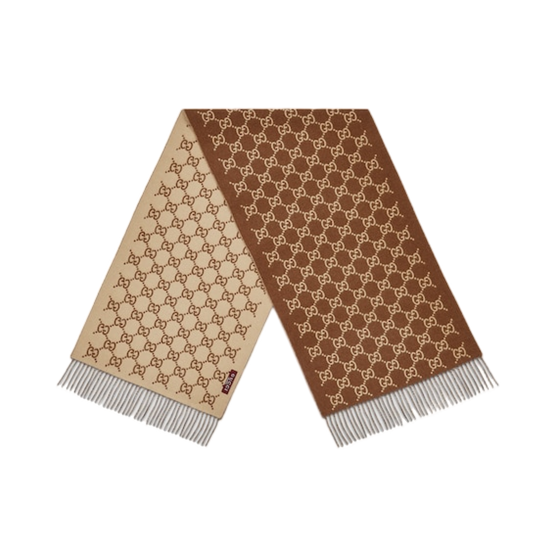 (W) 구찌 GG 캐시미어 머플러 다크 브라운 베이지