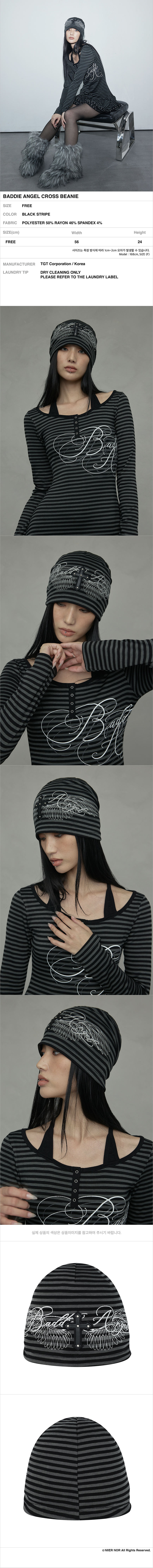 니어 노어 배디 앤젤 크로스 비니 블랙 스트라이프