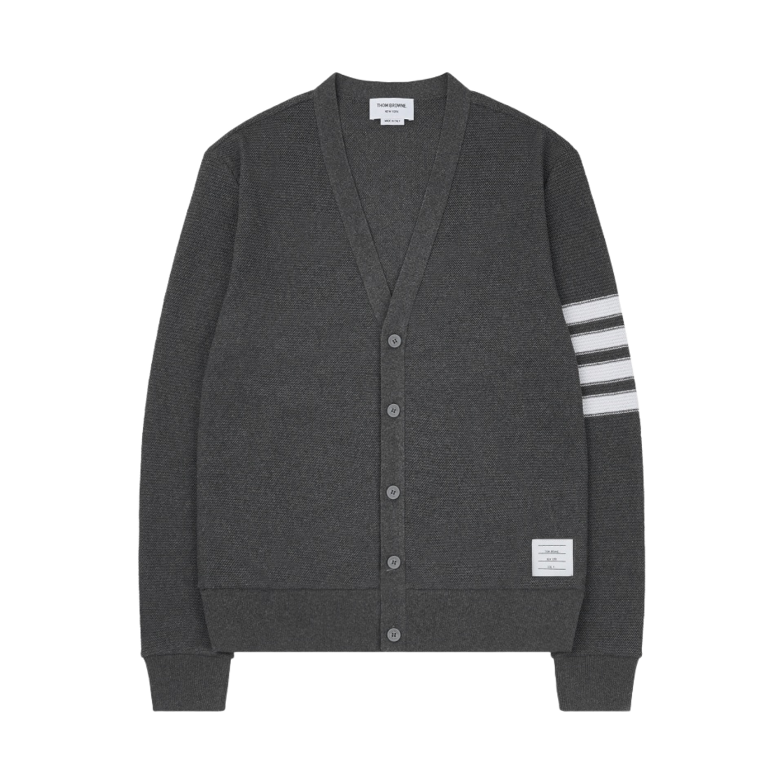 톰브라운 오픈 라셀 스티치 사선 브이넥 가디건 미디움 그레이