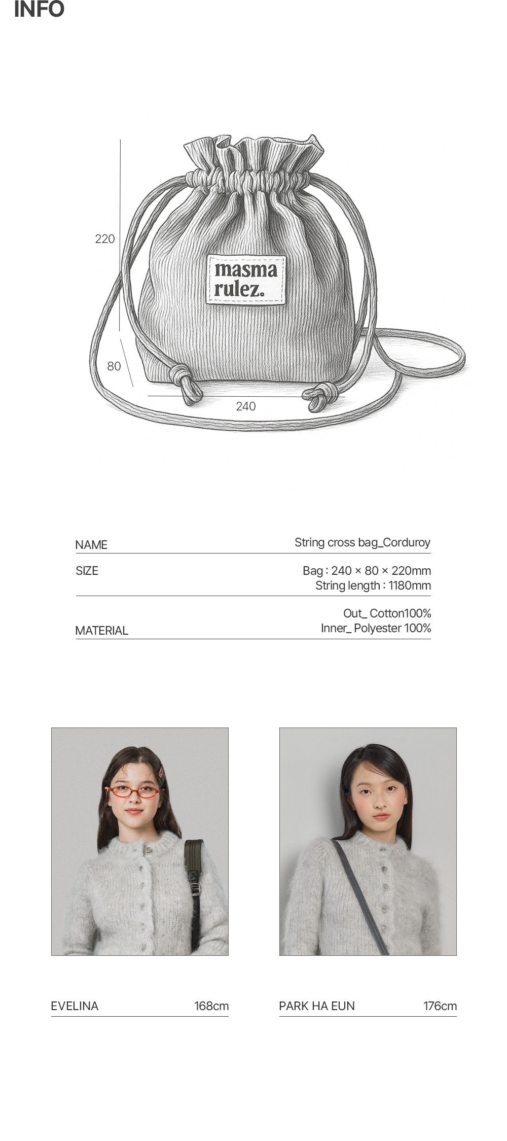 마스마룰즈 스트링 크로스 백 코듀로이 코랄 핑크