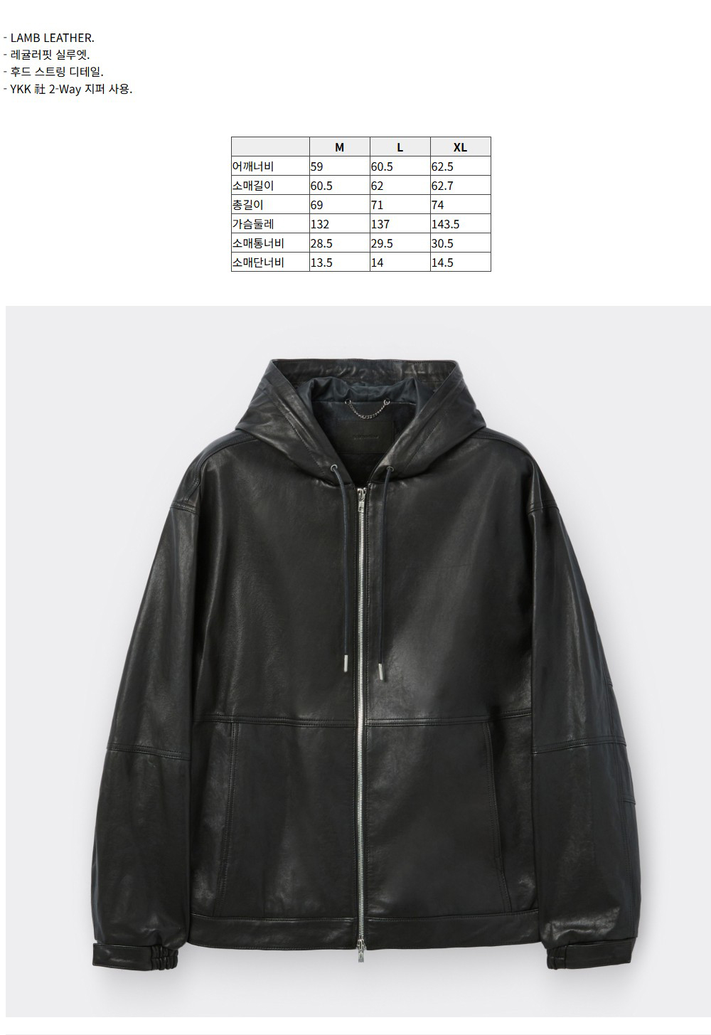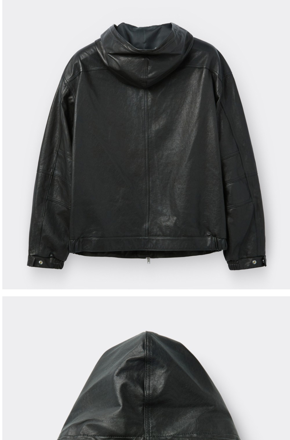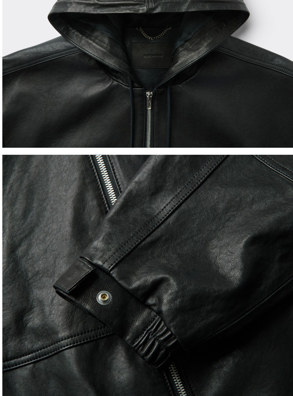 커스텀멜로우 가죽 후드 집업 재킷 블랙