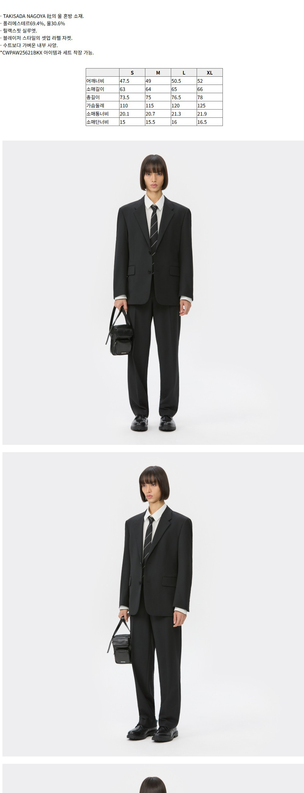 커스텀멜로우 릴랙스 핏 울 블렌드 셋업 재킷 블랙