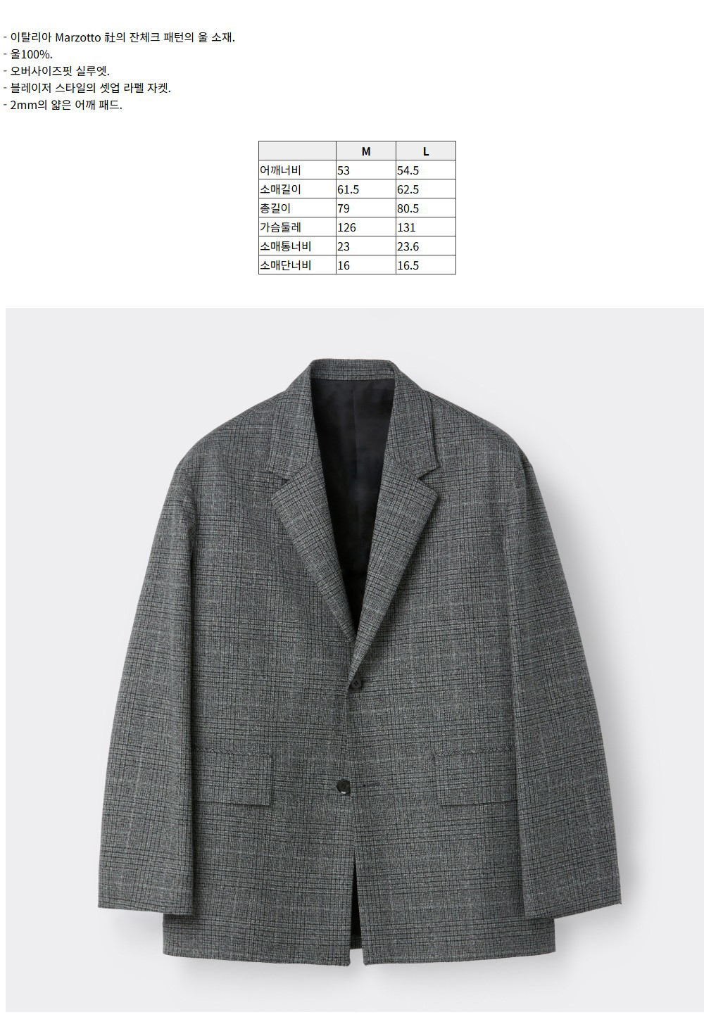 커스텀멜로우 울 체크 재킷 라이트 그레이