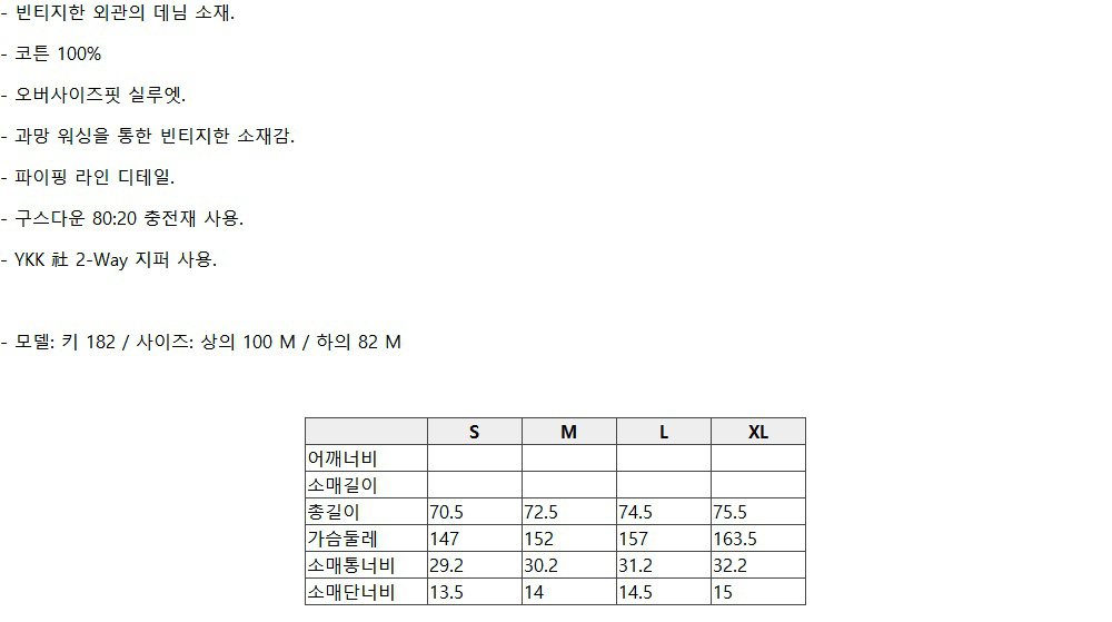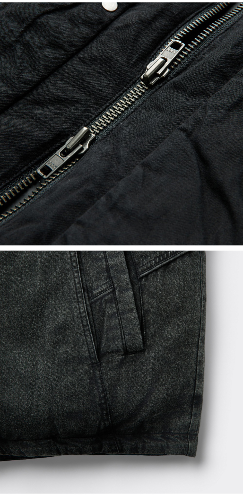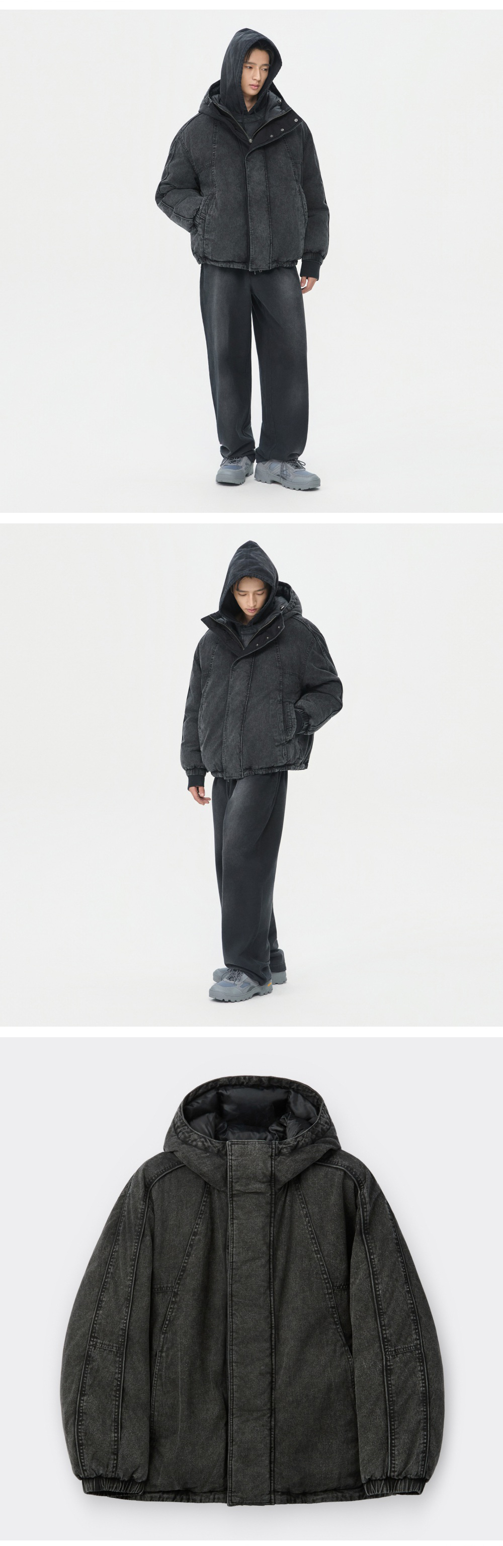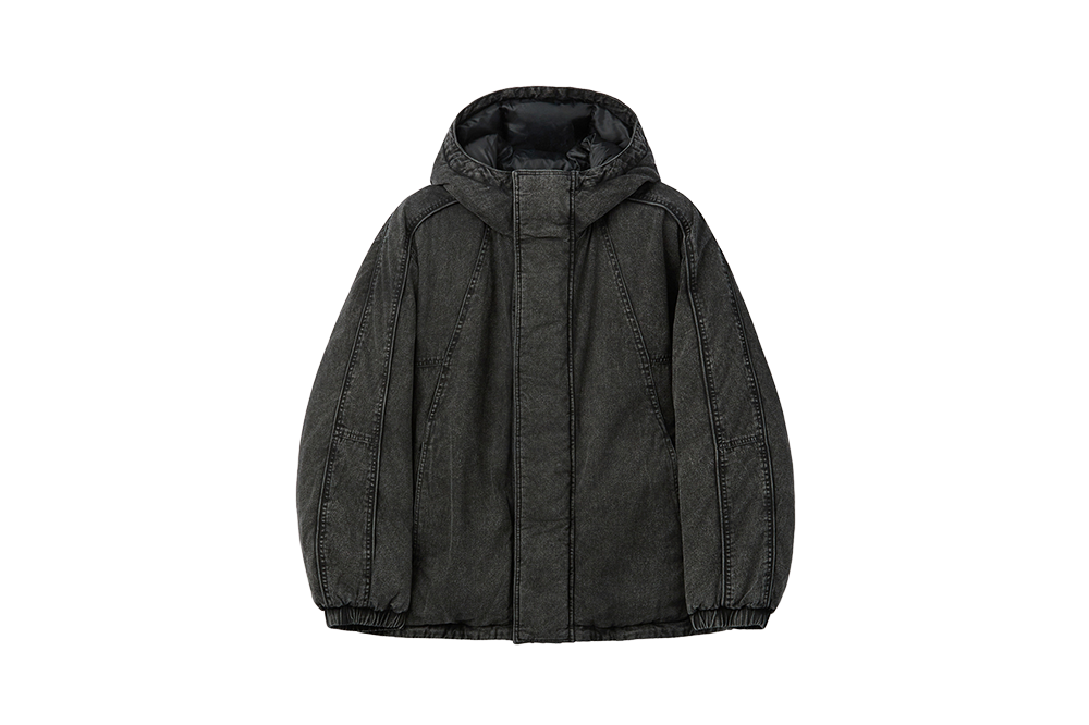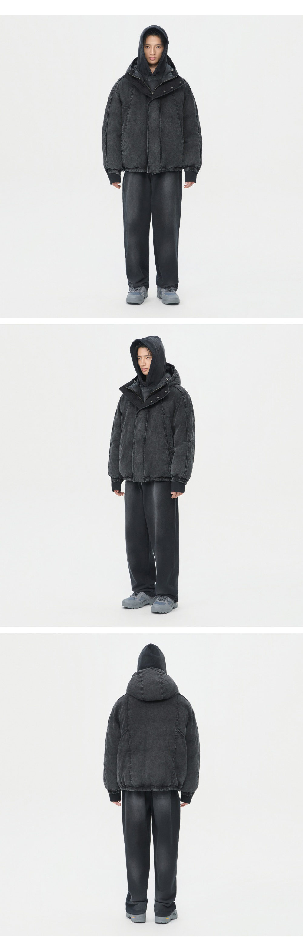 커스텀멜로우 데님 다이드 후드 다운 재킷 다크 그레이