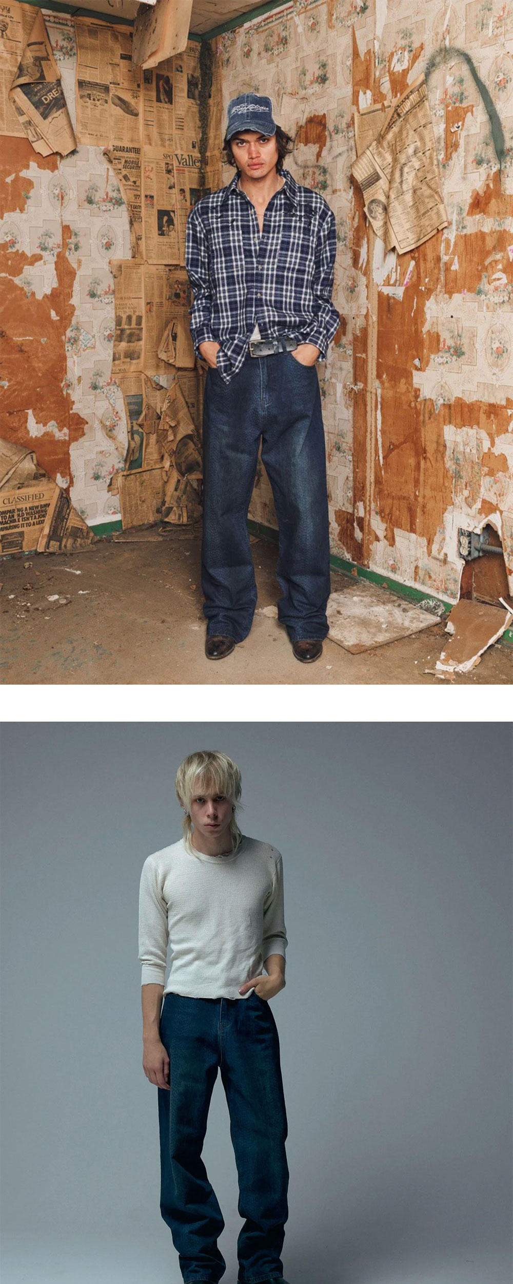 바스켓케이스 랙스 배기 데님 스네이크스킨 다크 블루입니다. - 루즈한 배기핏 실루엣 - 스네이크 패턴이 더해진 인디고 워싱 데님 - 16oz 헤비웨이트 코튼 데님 - 착용할수록 자연스럽게 변하는 페이드감 - 정사이즈 추천 (더 여유 있게 입고 싶다면 한 사이즈 업) ※ 워싱 특성상 제품별 페이드감이 조금씩 다를 수 있습니다.