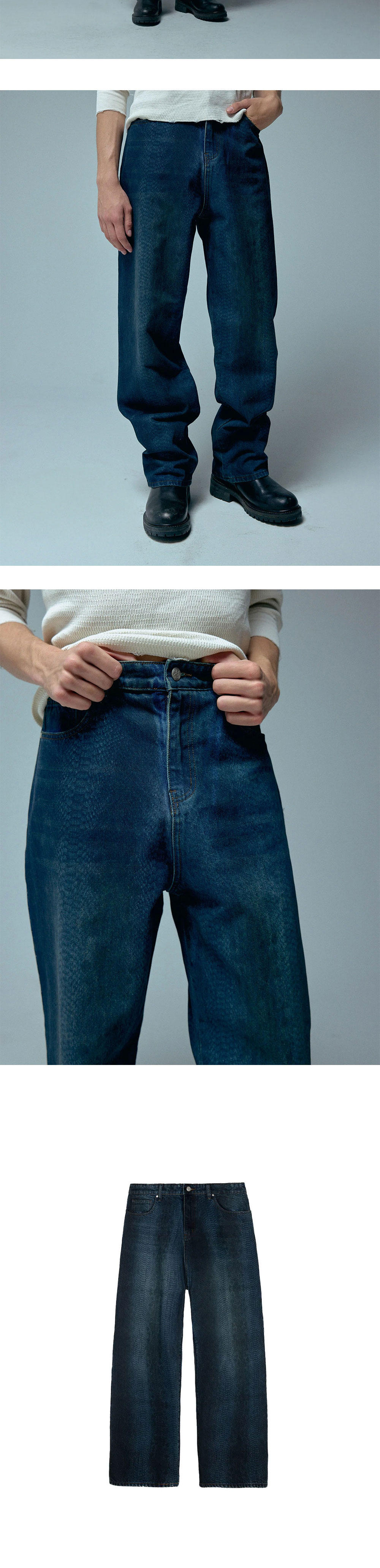 바스켓케이스 랙스 배기 데님 스네이크스킨 다크 블루 - 25FW