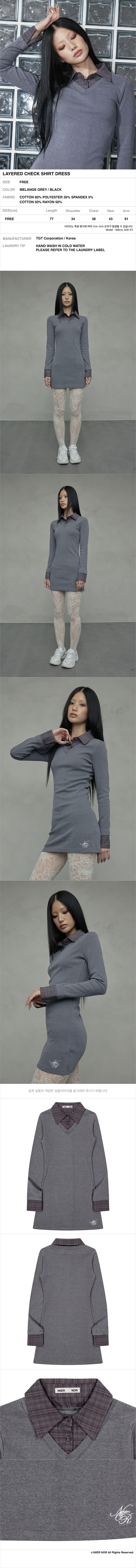 니어 노어 레이어드 체크 셔츠 드레스 멜란지 그레이