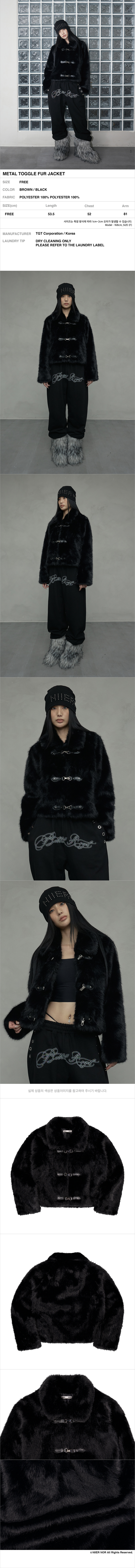 니어 노어 메탈 토글 퍼 자켓 블랙