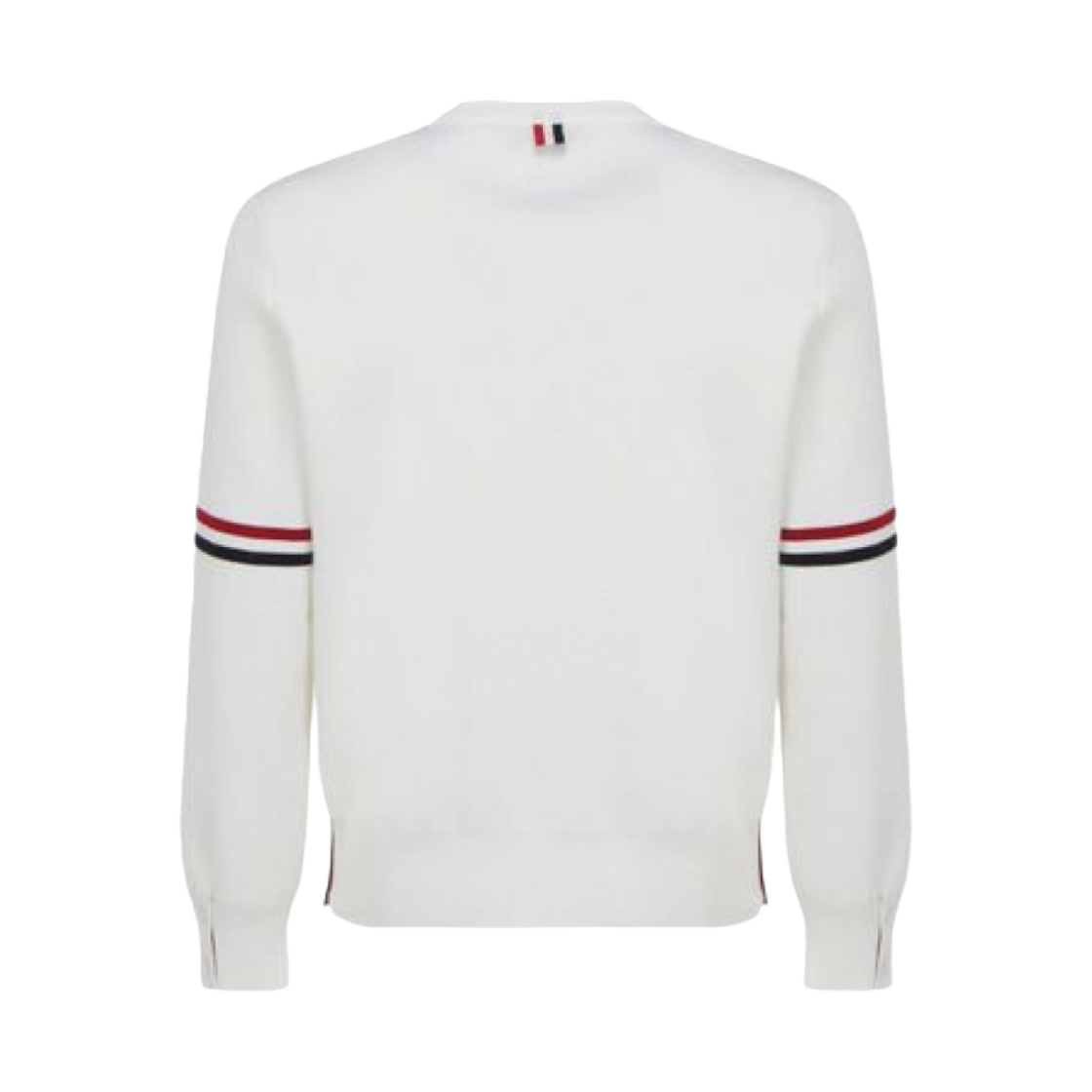 Thom Browne Cotton Milano Stitch Stripe Armband Crewneck Sweater White