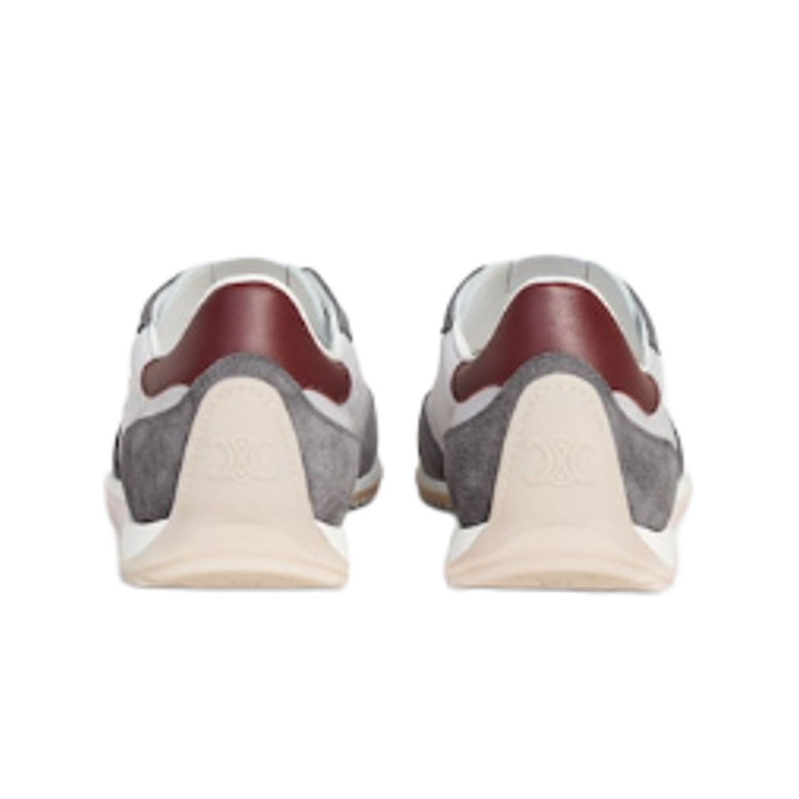 Celine Racer Low Lace-Up Sneaker with Triomphe in Nylon Suede Calfskin Grey Burgundy