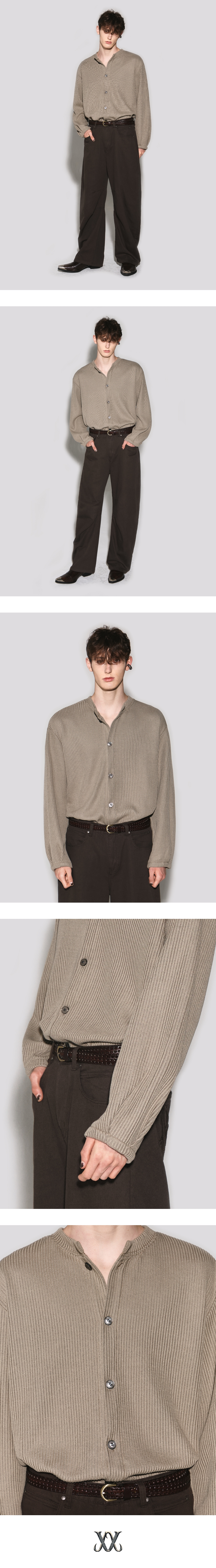 - 편안하게 착용가능한 오버 핏 크루넥 가디건 - 탄탄한 소재감과 벌룬 실루엣의 소매 디자인 - 소매 밑단 두개의 마주보는 깊은 턱 디테일 - 은은한 자개 색상의 고급 단추, 밑 단추 마감 - 등판 웨슬리 휴스턴 자수 로고 디테일 - DRY CLEAN ONLY