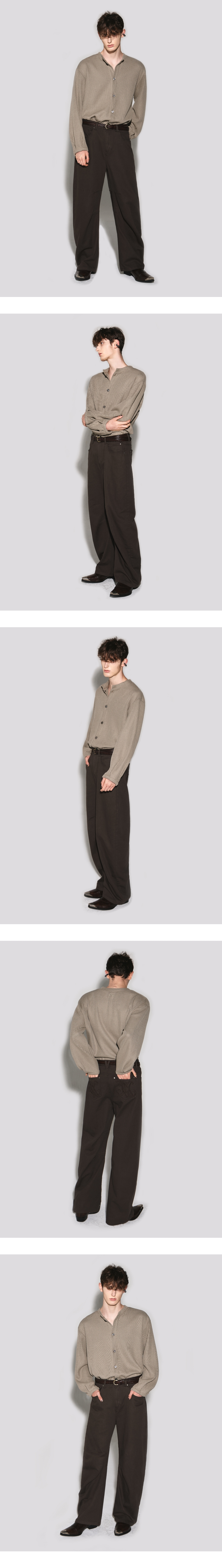 웨슬리휴스턴 크루 넥 벌룬 슬리브 가디건 카키베이지