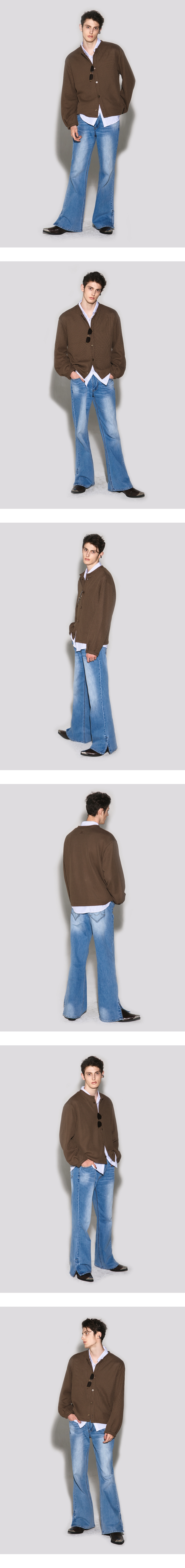 웨슬리휴스턴 크루 넥 벌룬 슬리브 가디건 다크브라운