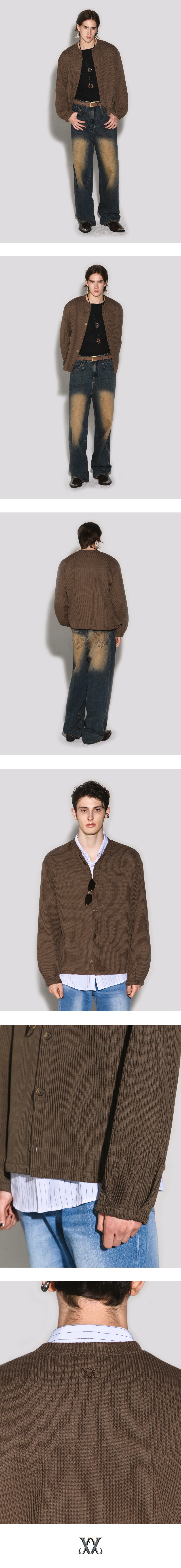 - 편안하게 착용가능한 오버 핏 크루넥 가디건 - 탄탄한 소재감과 벌룬 실루엣의 소매 디자인 - 소매 밑단 두개의 마주보는 깊은 턱 디테일 - 은은한 자개 색상의 고급 단추, 밑 단추 마감 - 등판 웨슬리 휴스턴 자수 로고 디테일 - DRY CLEAN ONLY