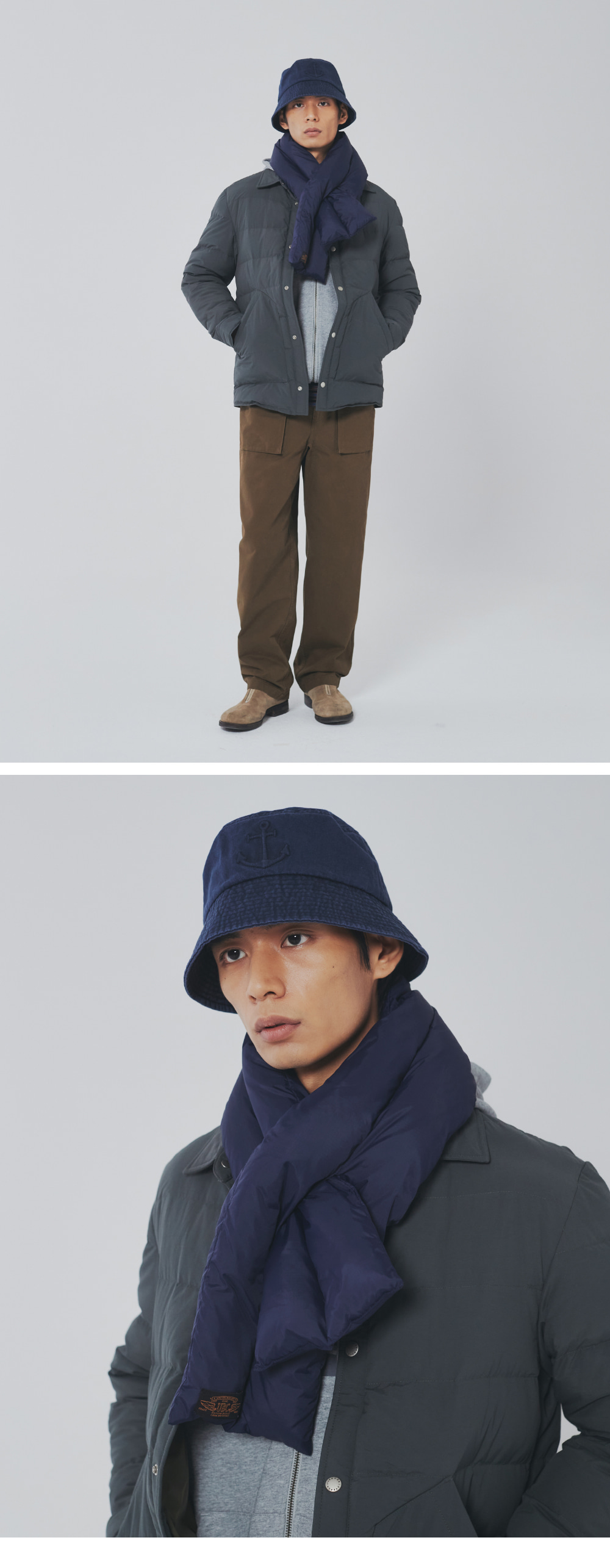 유니폼 브릿지 페더웨이트 덕 다운 머플러 네이비