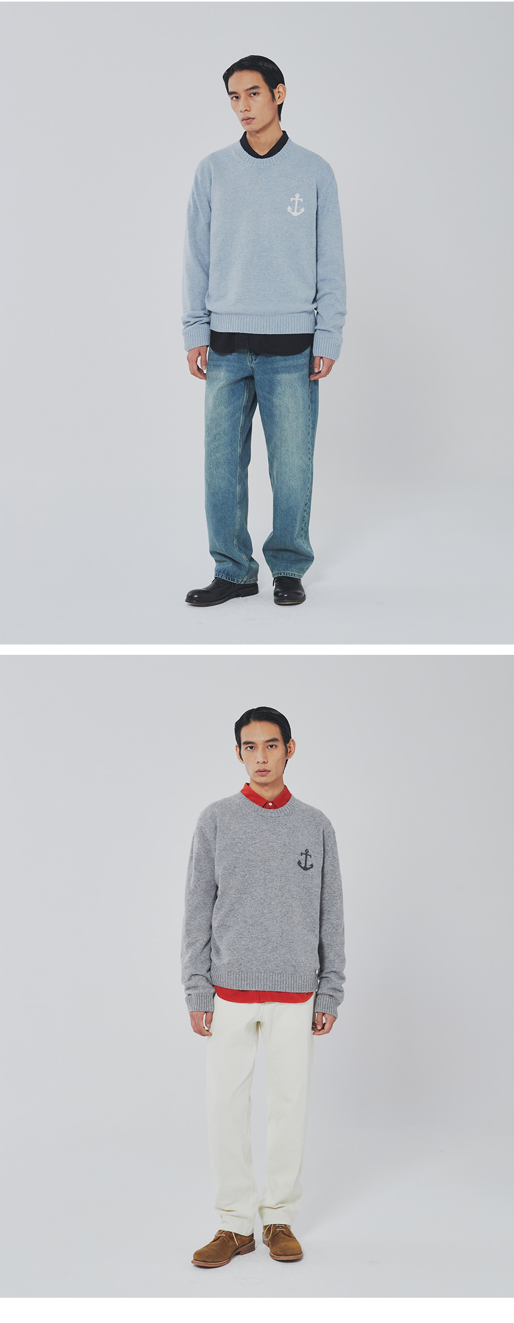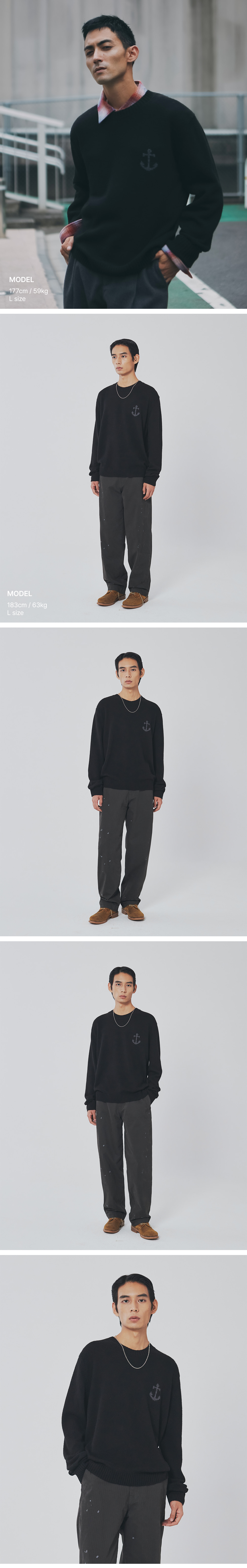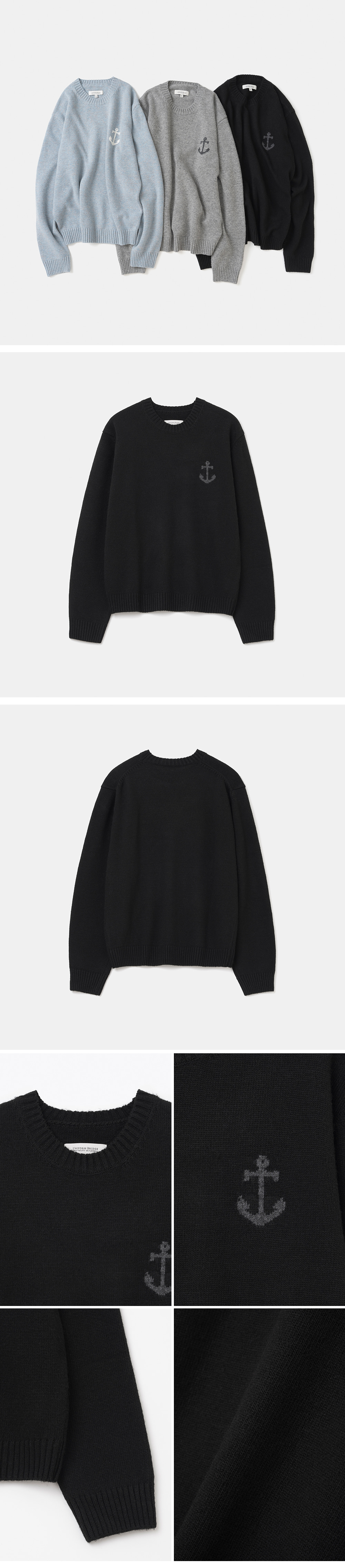 유니폼 브릿지 캐시미어 블렌디드 앵커 크루 넥 니트 블랙